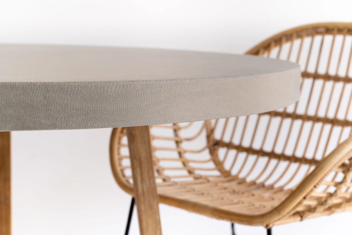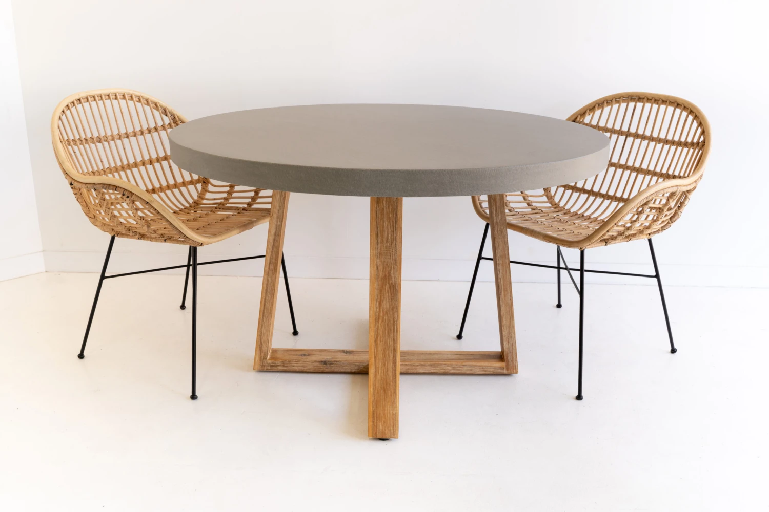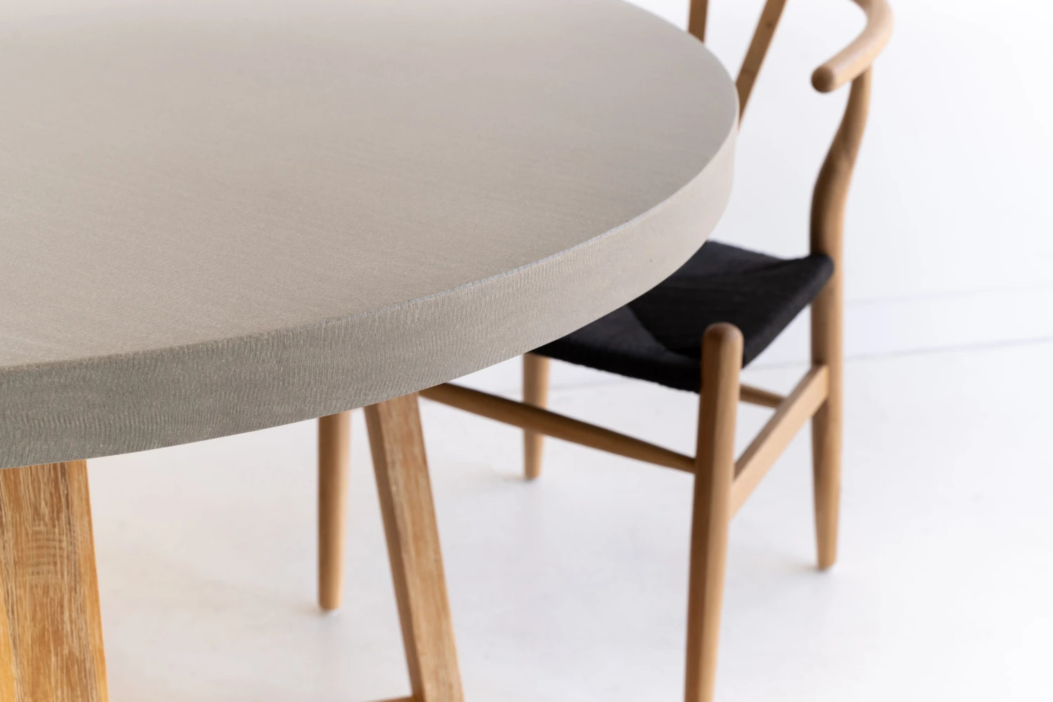 The Alta dining table features a hand polished Elkstone Grey top with handmade Light Honey Acacia Wood legs. Deep-dyed and lightly sanded, the deceptively simple surface is alive with texture and movement, each table is unique and slightly different to the next.
