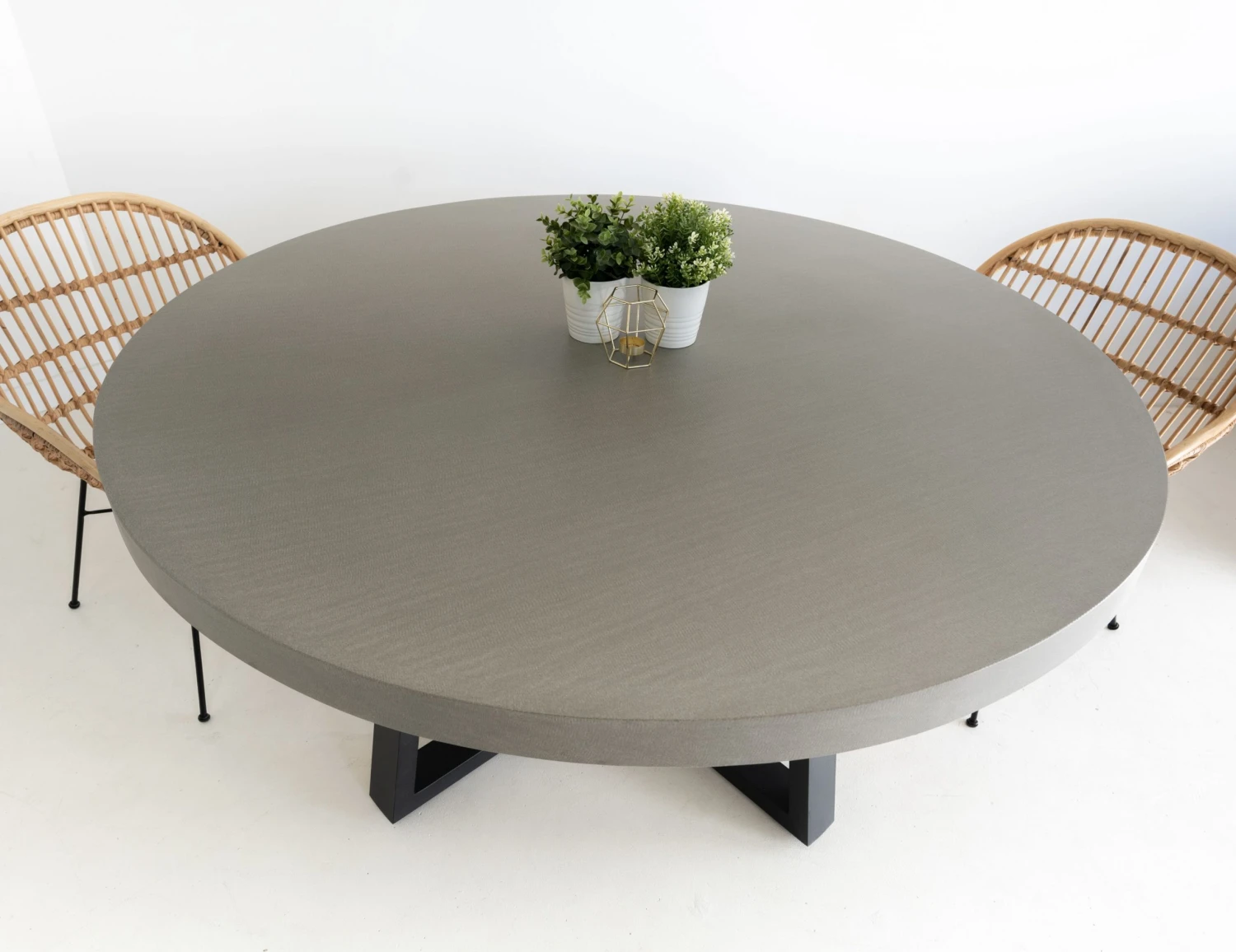 Why ElkStone?: ElkStone tops are an engineered, strong natural composite using crushed river rock, sand, lava stone & resin as the main raw materials. ElkStone tops have excellent structural characteristics. The weight of a standard ElkStone Table is approximately half the weight of a concrete table of the same size. Through different stages of production, ElkStone tabletops are handled by several people with years of experience. Their craftsmanship will show in the details and set your table apart from any other similar piece you may encounter.