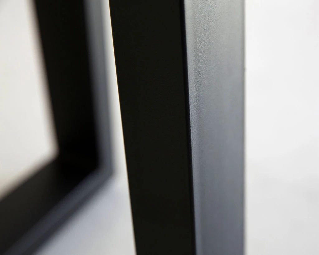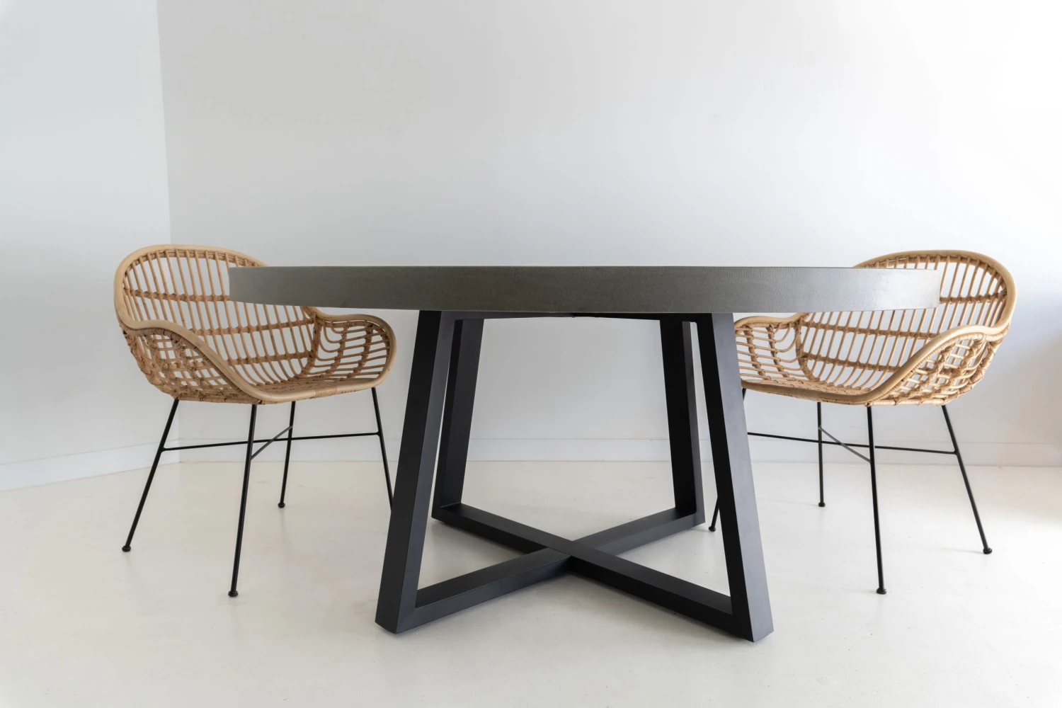 The Alta Elkstone dining table features a hand polished ElkStone Grey top with handmade Black Powder Coated Legs. Deep-dyed and lightly sanded, the deceptively simple surface is alive with texture and movement, each table is unique and slightly different to the next.