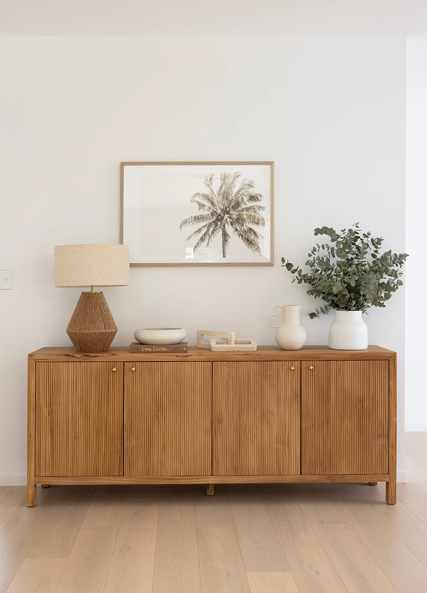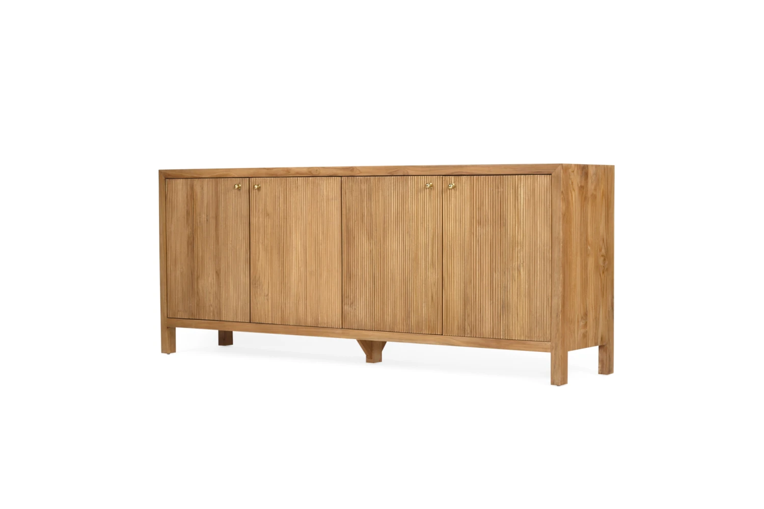The Audrey Sideboard is constructed from solid teak and features a Natural finish. It has 4 opening doors.