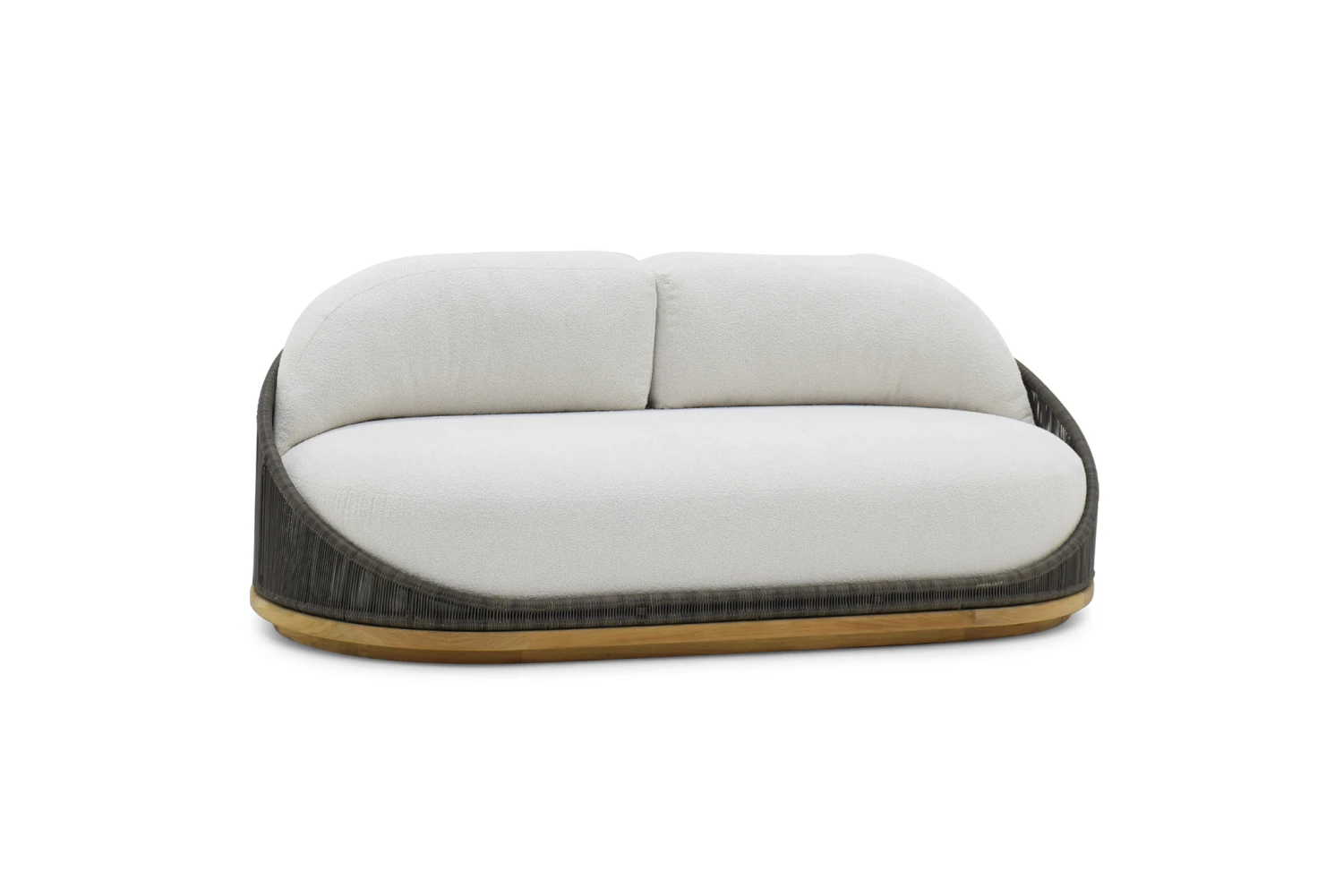 The Avoca Outdoor Sofa is built for the harsh elements of the Australian landscape with a gentle elegant touch. The frame and base is built using premium & solid A grade teak timber and is wrapped in a marine grade Basalt Wicker making it perfectly suited for outdoor use. The quality quick dry foam is covered in an off white boucle outdoor fabric by Texstyle which can be machine washed (cold cycle). YKK zips ensure quality and ease of use. Place this outdoor setting next to the pool or in the garden. Matching 1, 3 seater and ottoman also available from Abide Interiors.