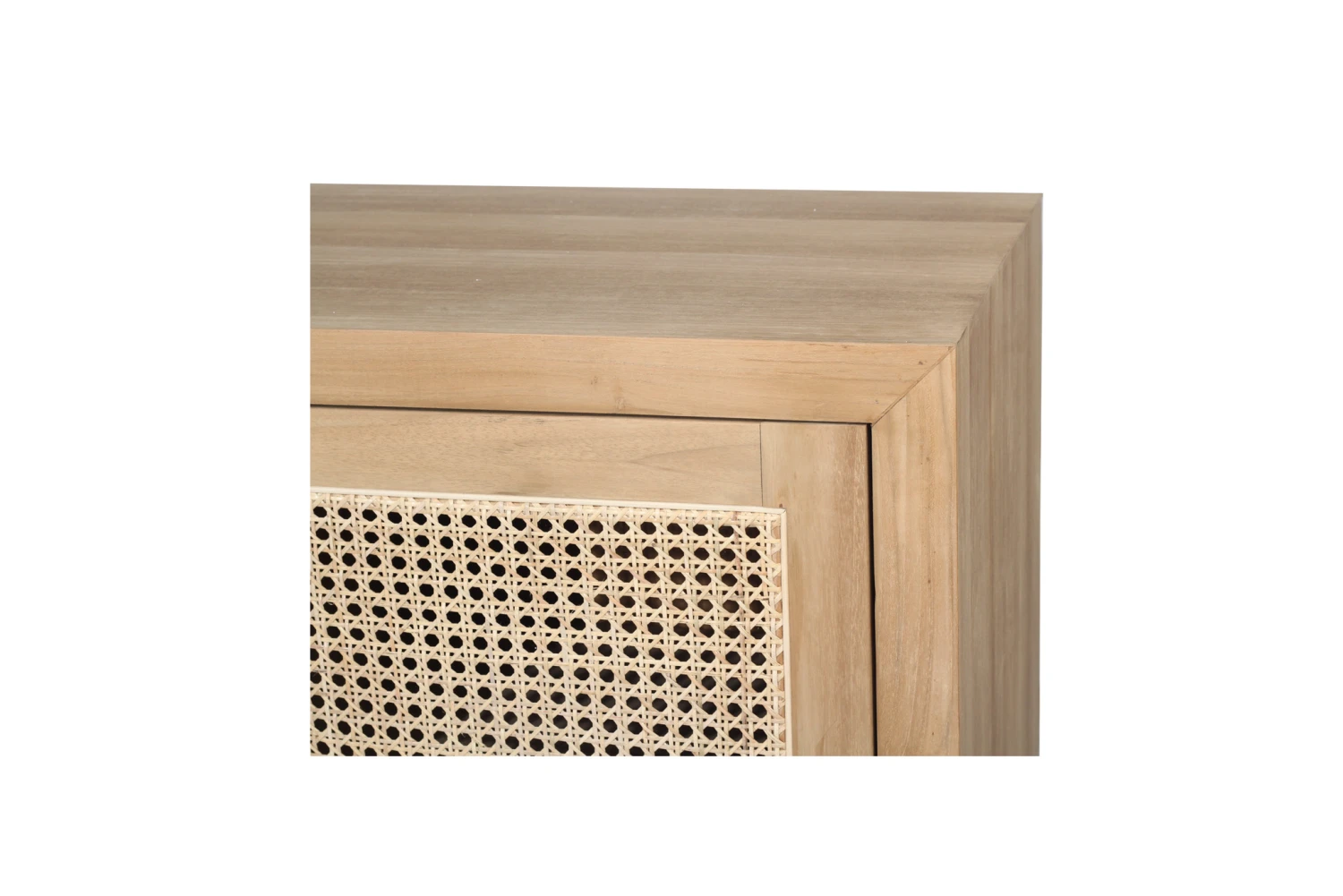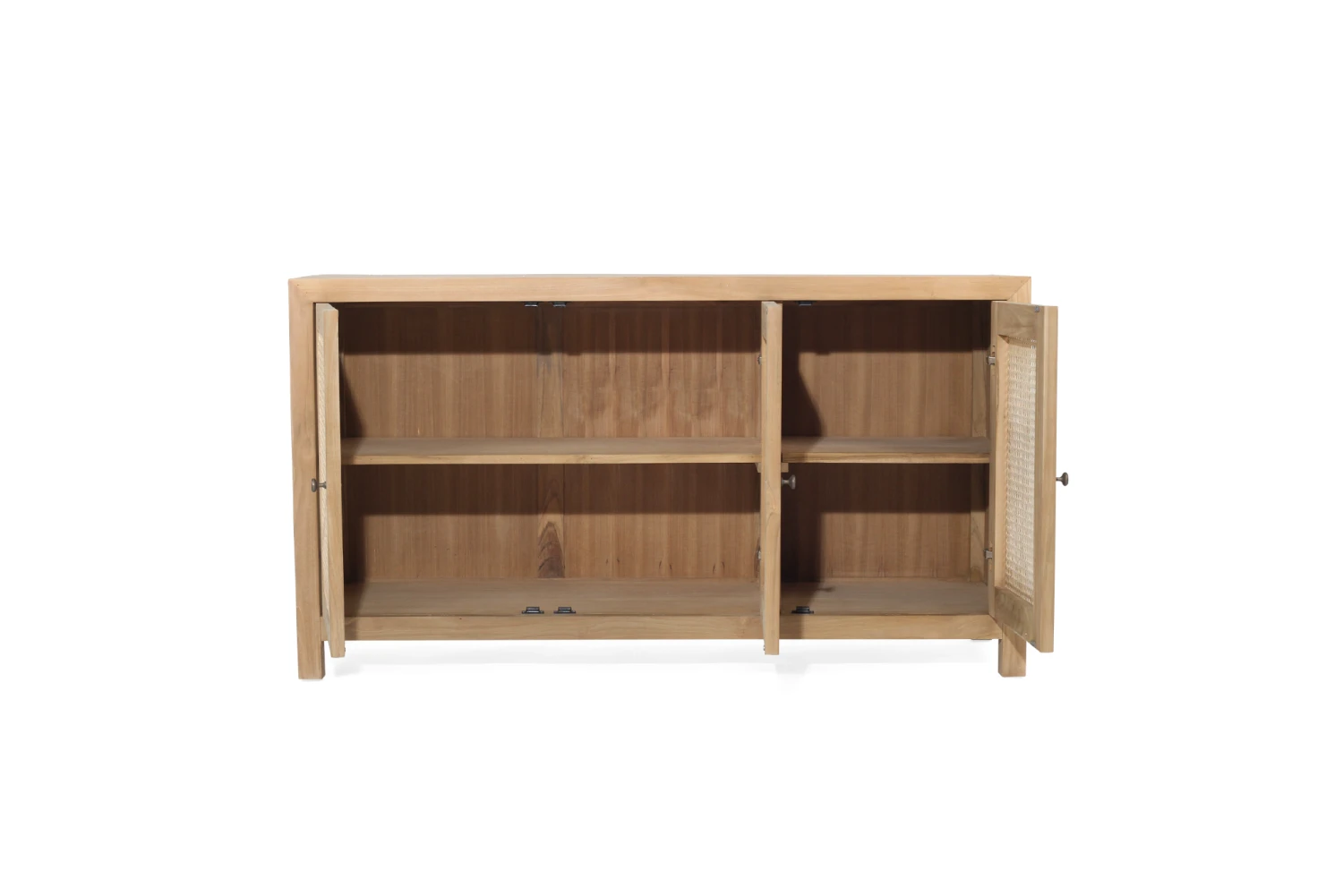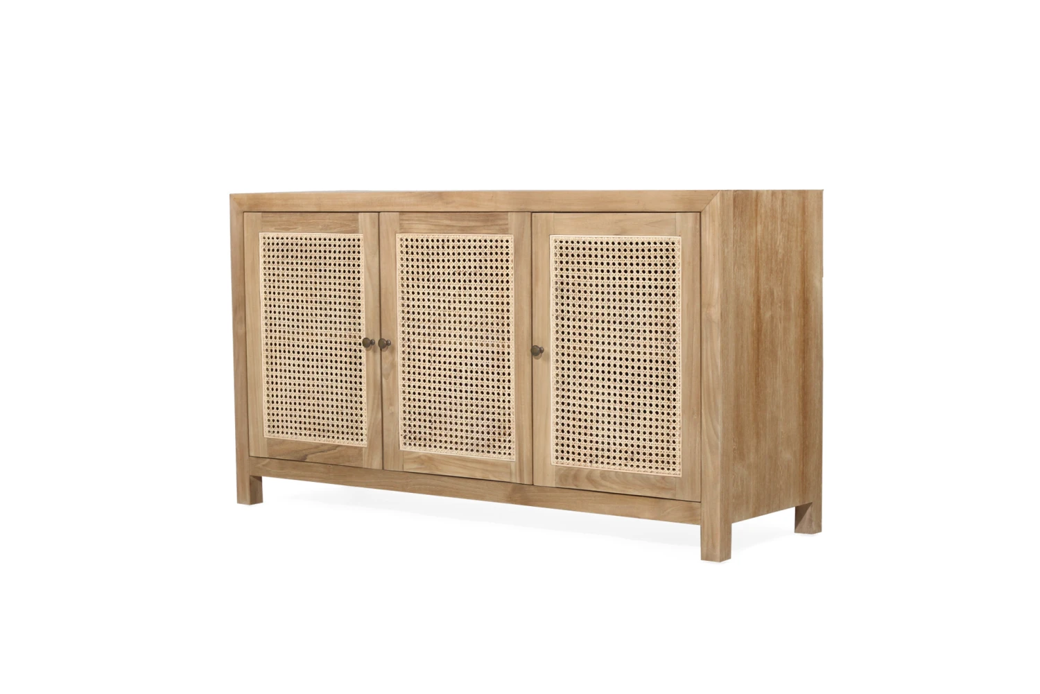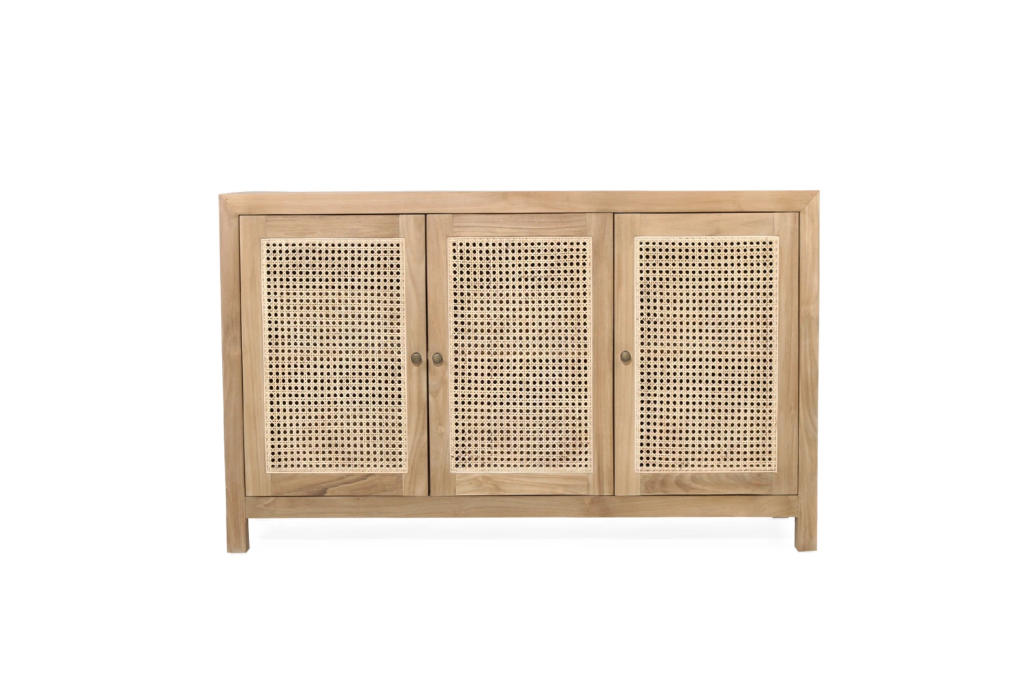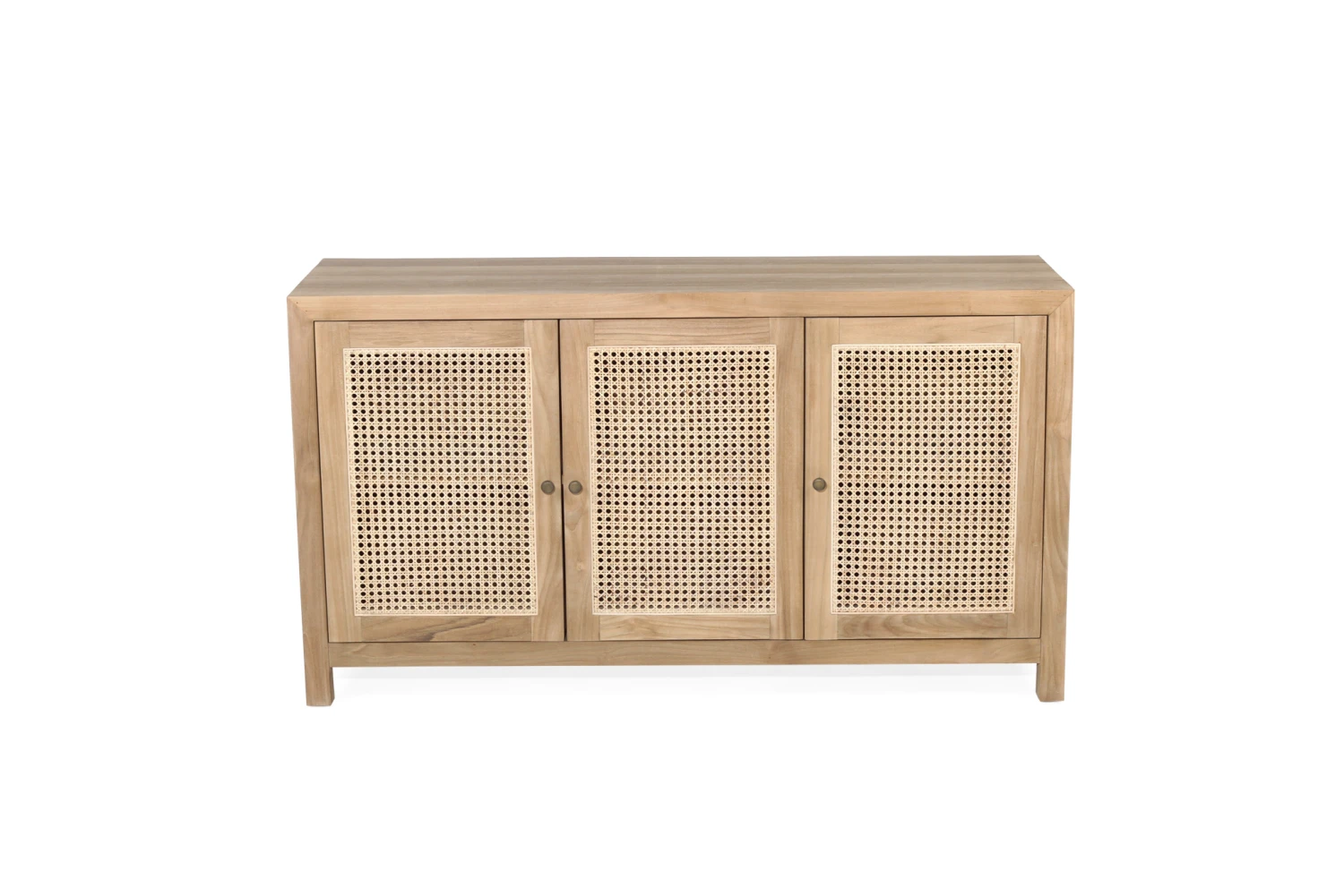 Made from high grade sustainable teak, the Charlie Sideboard is presented with a fine sanded finish and features rattan inserts on it’s 3 doors. The Charlie Sideboard is solid and unique in its structure and design and will complete any living area.