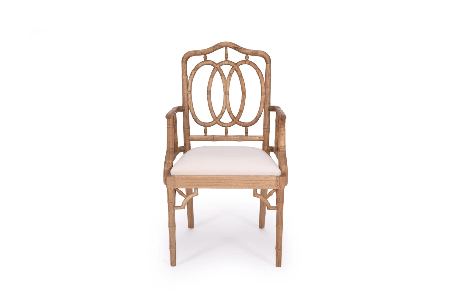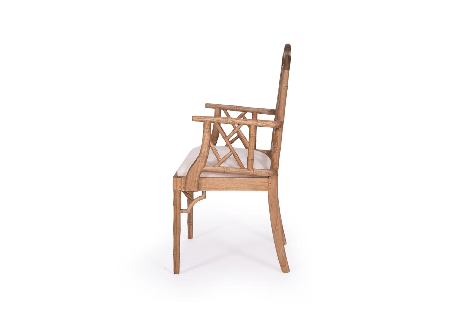 Our Chippendale Armchairs showcase the sophisticated soul of Chinese Chippendale styling. Solid White Cedar wood frame is artisan crafted with classic fretwork hand finished with bamboo-inspired turnings. 100% Belgium Linen seat removable cushion supported by a woven rattan seat. The Chippendale Dining Chair is great for those looking to add classic Hamptons or coastal styling to their home.