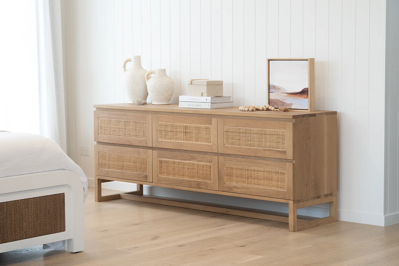 Inspired by the raw coastal beauty of the Sunshine Coast, the Clovelly Chest Of Drawers is made from 100% American Oak and has a smooth, raw-looking finish. The Clovelly Chest Of Drawers has been sanded so smooth and fine and maintains a “raw” look thanks to the Osmo PolyX Raw Oil finish. This chest of drawers is extremely solid, perfect to be handed down from generation to generation.