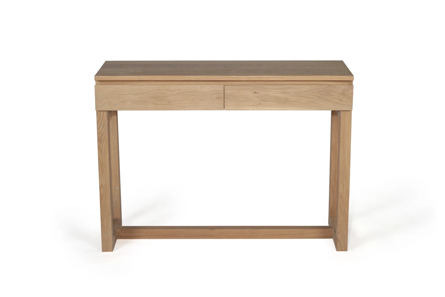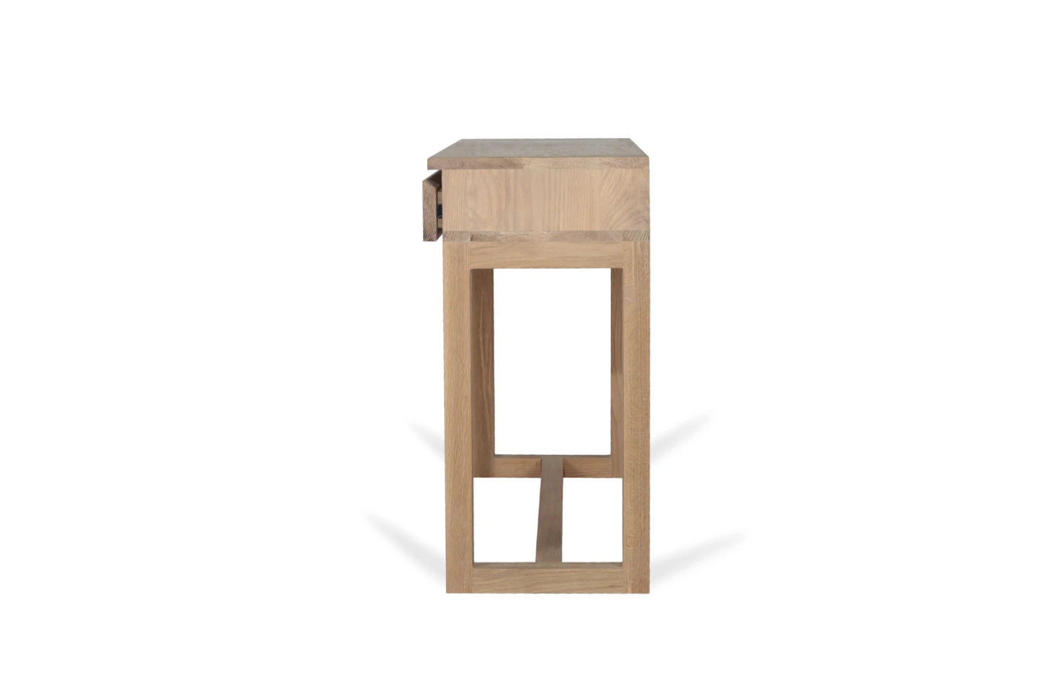 It has been sanded so smooth and fine and maintains a “raw” look thanks to the Osmo PolyX Raw Oil finish. It’s extremely solid and would be a perfect compliment to our other American Oak consoles and tables.