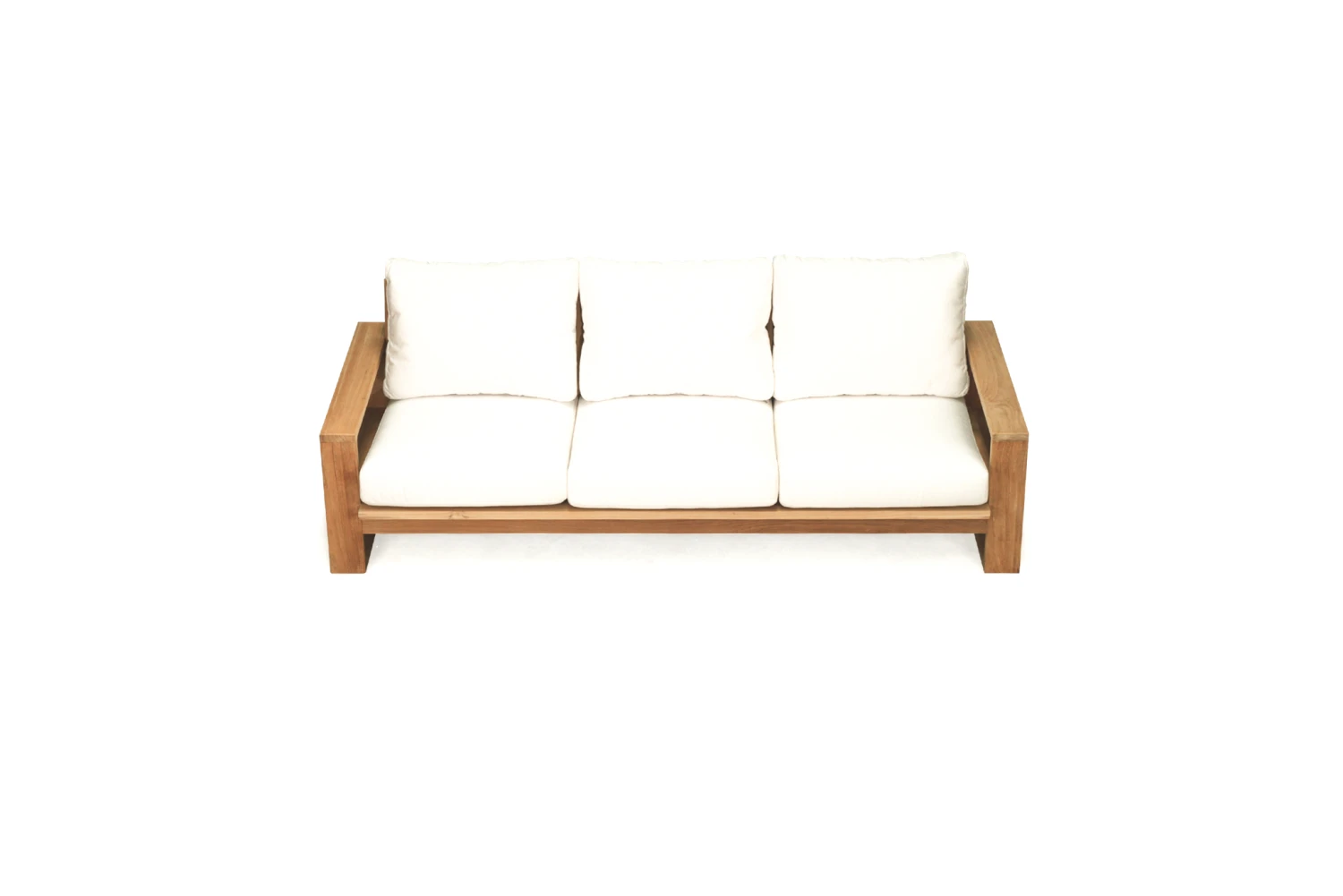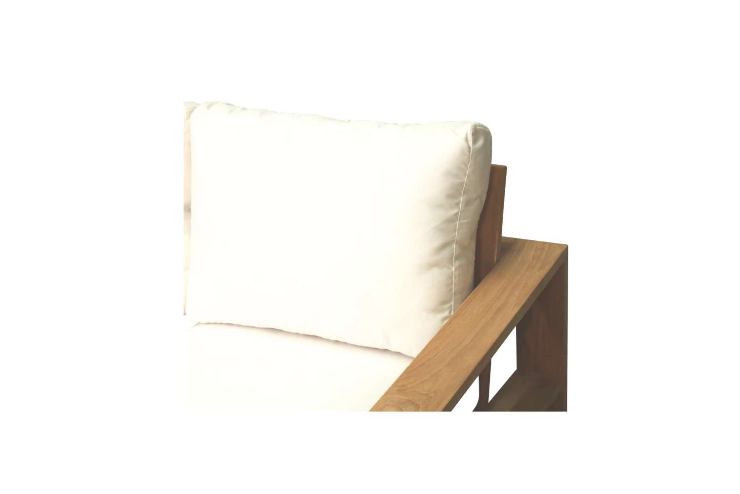 The Double Island Outdoor 3 Seat Sofa is built for the harsh elements of the Australian landscape with a gentle elegant touch. The frame is built using the premium & solid A grade teak timber which has been kiln-dried to avoid mold, mildew, and cracking making it the perfect material for outdoor use, requiring minimal maintenance. The quality quick dry foam is covered in a white, slate or silver Sunbrella fabric which can be machine washed (cold cycle) and bleached to keep the crisp white bright. YKK zips ensure quality and ease of use. Place this outdoor setting next to the pool or in the garden. Matching 1 seater also available from Abide Interiors