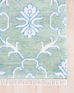 Hand knotted of 100% wool by Artisans in India, our Eden rug takes inspiration from the Turkish Oushak design. With a refreshed colour pallet of soft green and blue this beautiful design will add a touch of luxury and femininity to your space.