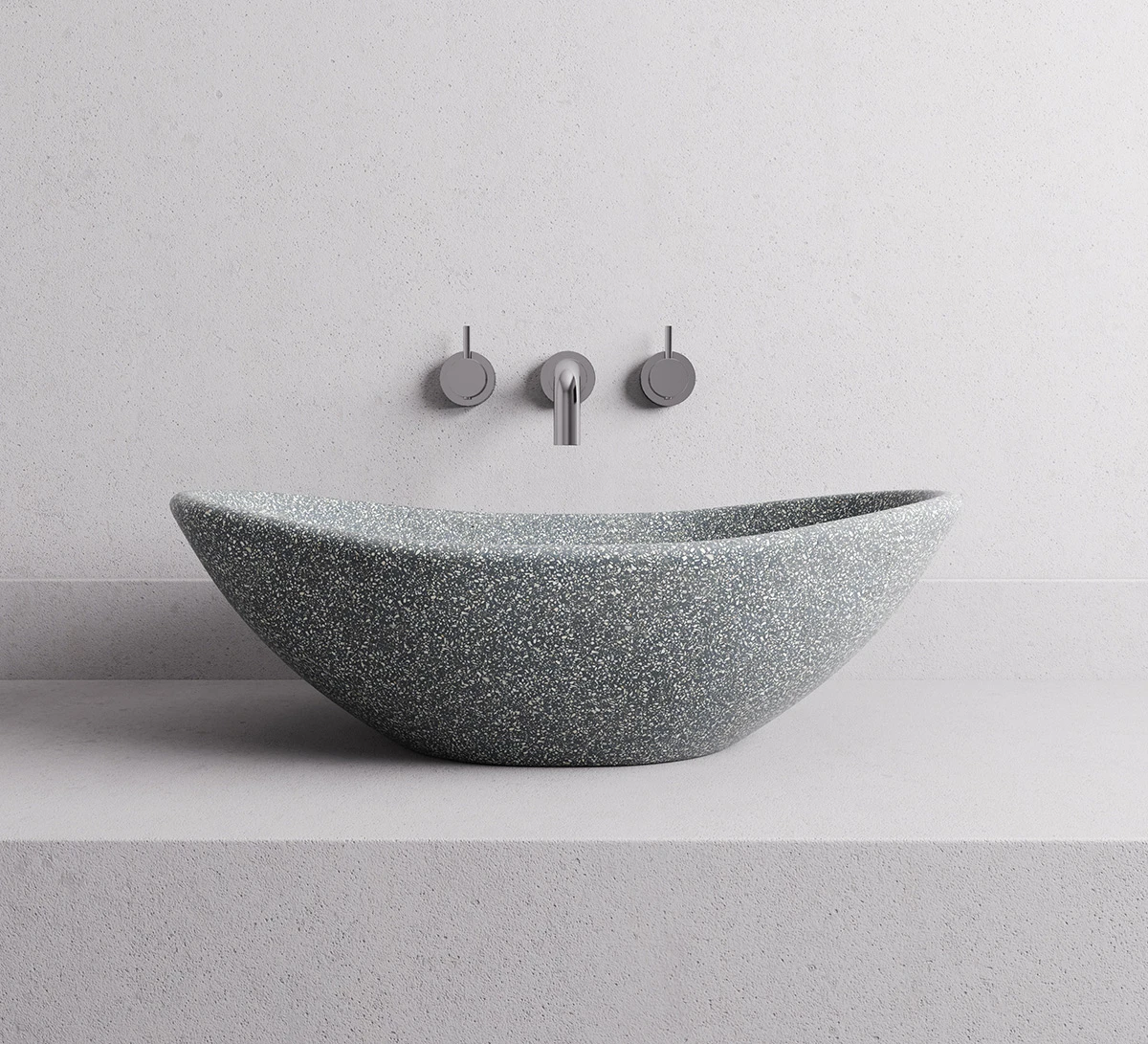 Crafted with meticulous attention to detail, our terrazzo hammock-shaped basin showcases the beauty of natural stone. The terrazzo material not only enhances its durability but also adds a luxurious touch to its appearance, making it a standout piece in our range.