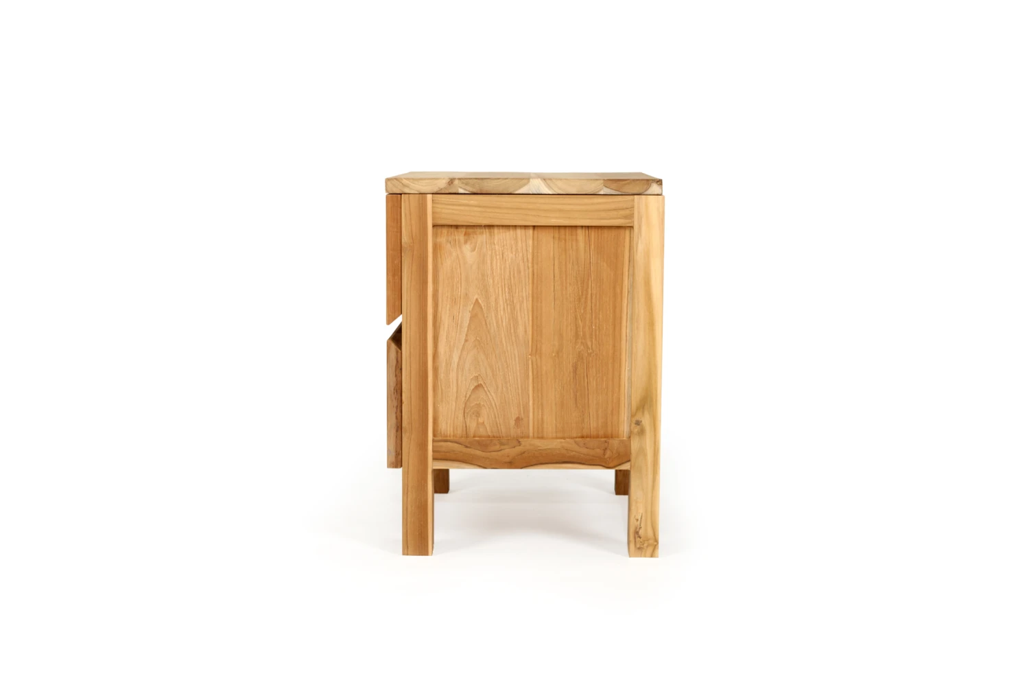 Made from high grade sustainable teak, the Fernando Bedside Table is presented with a fine sanded finish and will complete any bedroom. The Fernando Bedside Table is solid and unique in its structure and design.
