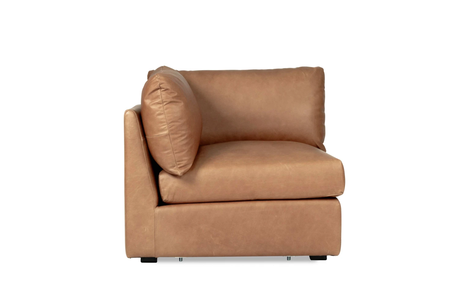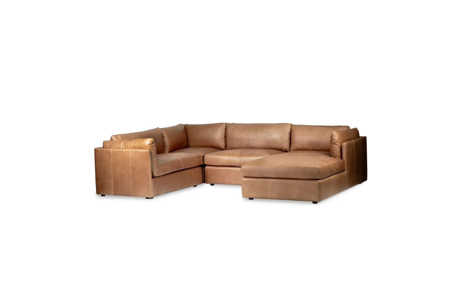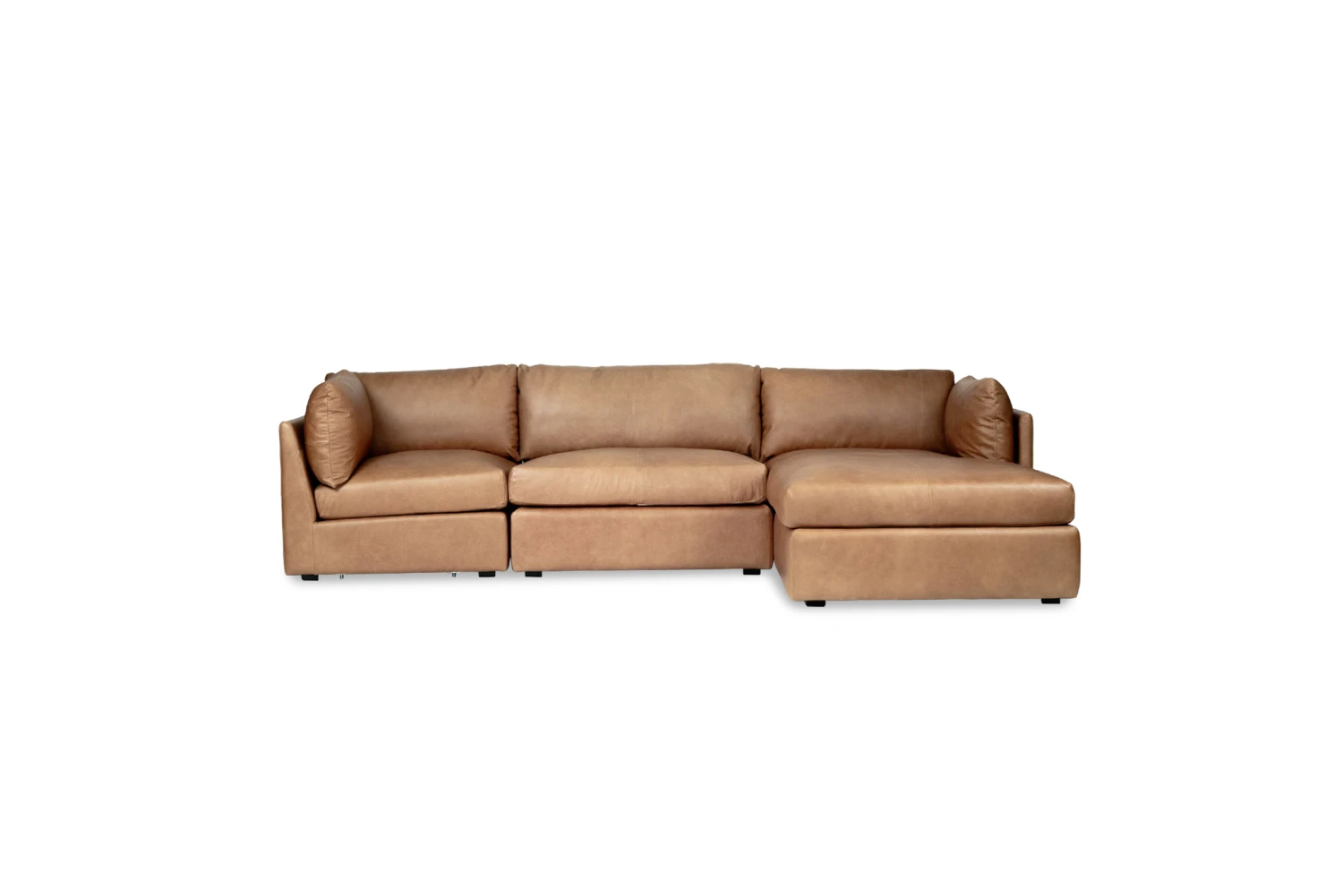 Finished here in Trends Saddle Leather, the Frankie Modular Sofa is also available in Performance Linen Oatmeal fabric.