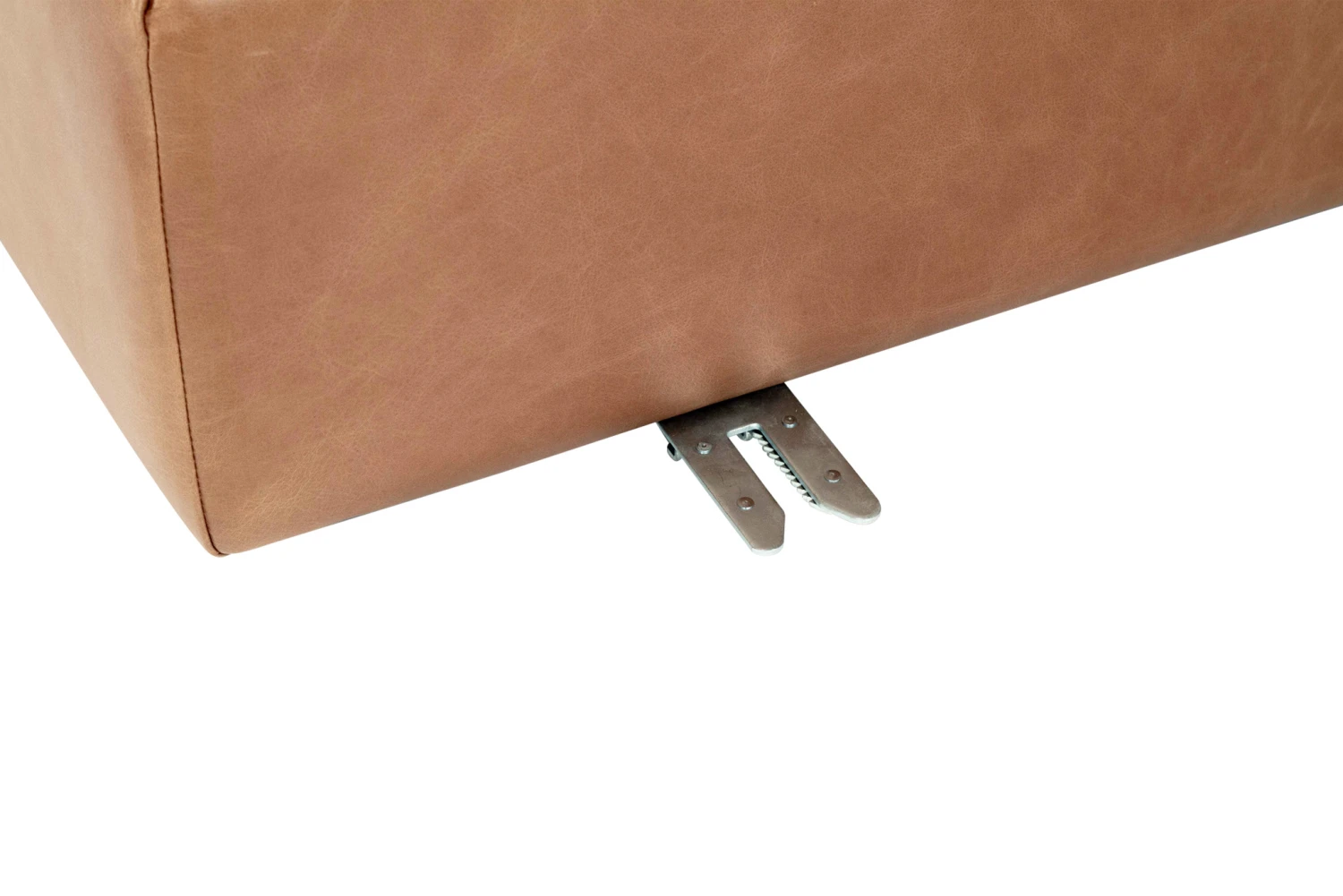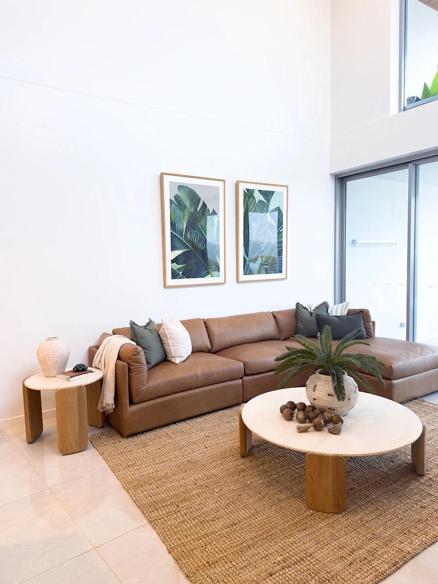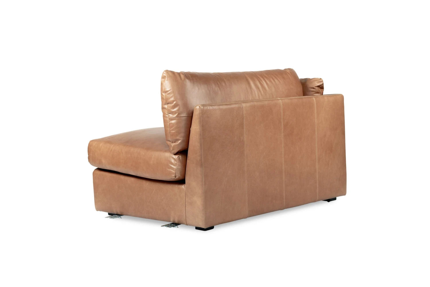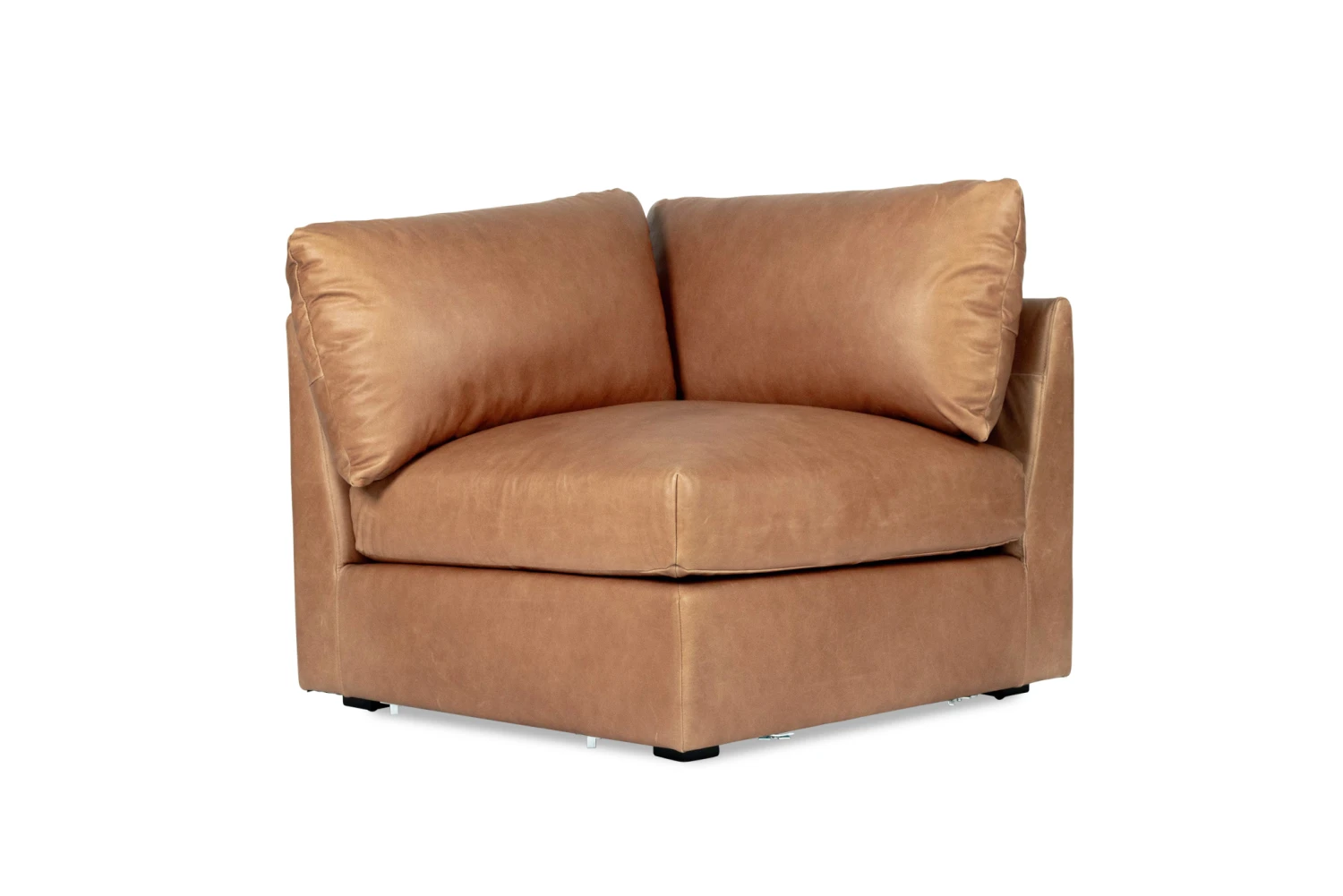 Finished here in Trends Saddle Leather, the Frankie Modular Sofa is also available in Performance Linen Oatmeal fabric.