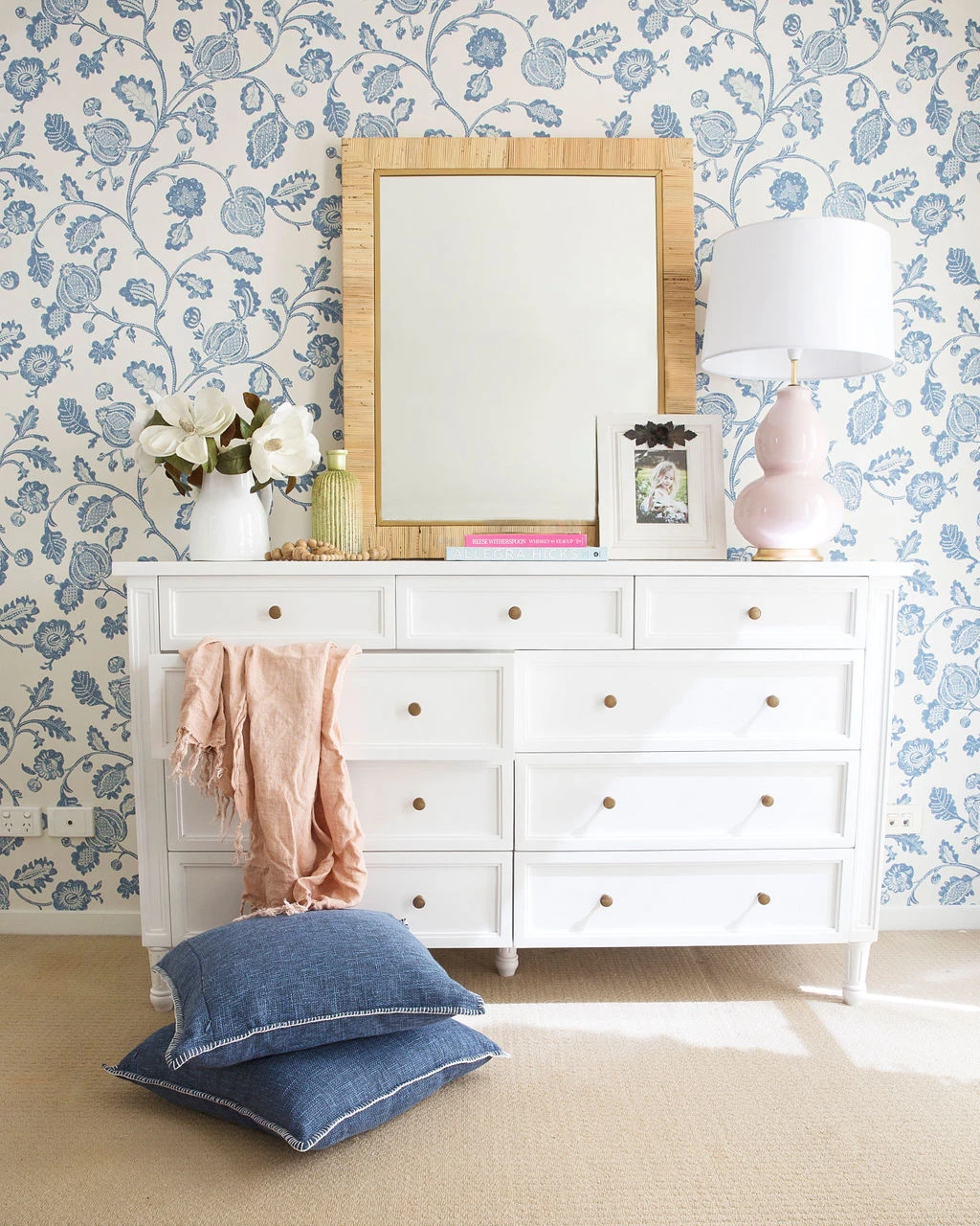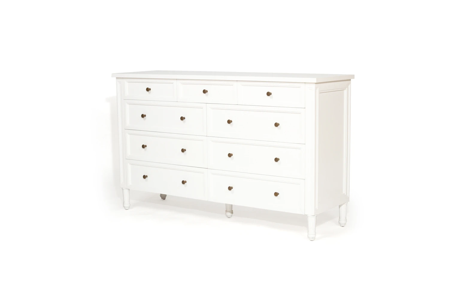 The Hamilton Dresser completes the Hamilton Bedroom Collection by adding the final piece to this popular bedroom puzzle. Made from solid mahogany timber, this 9 draw unit is solid and unique in its structure and design. This white 9 drawer dresser can stand alone as a beautiful addition to any room or be completely at home when its complimented with a Hamilton bed & bedside tables.