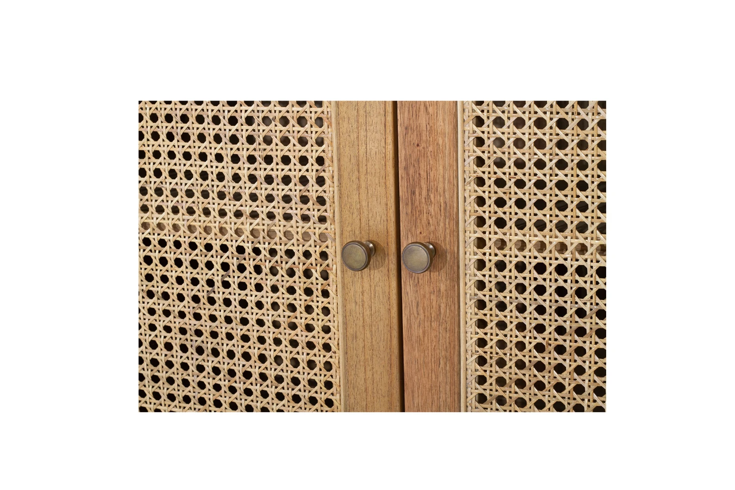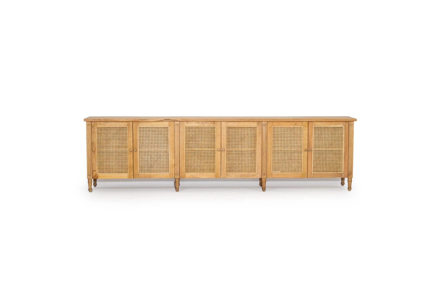 The Hamilton Six Door Sideboard is made from sustainability sourced white cedar wood and has a classic smooth weathered oak finish. This sideboard is extremely solid yet elegant in its refreshing burst of rattan (cane) inserts. It has 6 doors and a shelf behind each door with classic rattan inserts to store decor, books or towels.