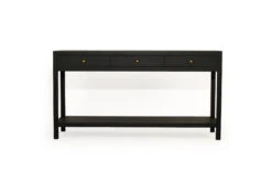 Crafted from solid hardwood, the Lindsay Console Table features handsome brass knobs. Finished in Black.