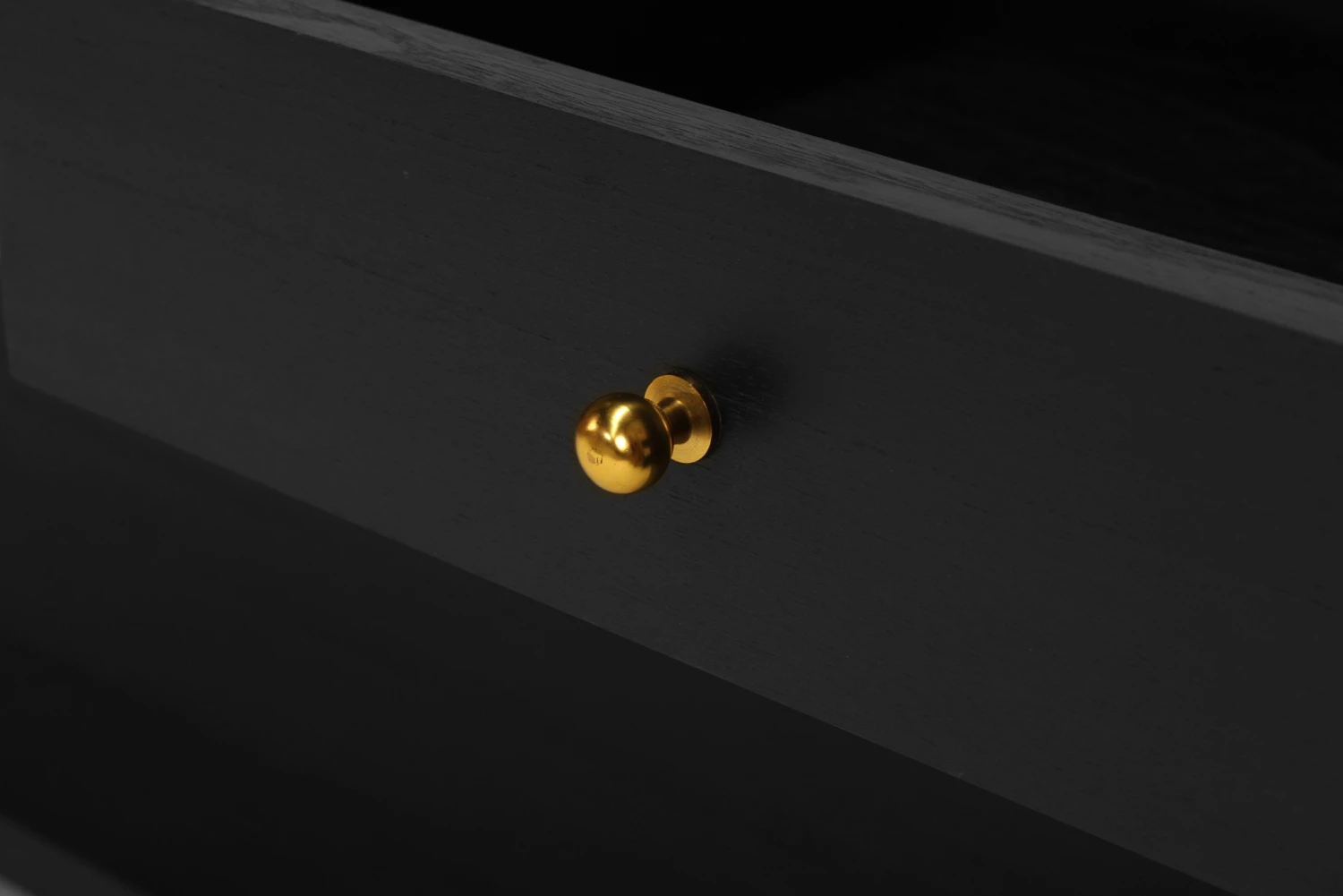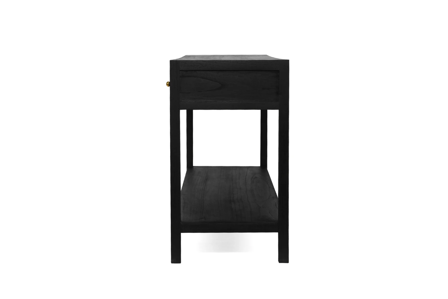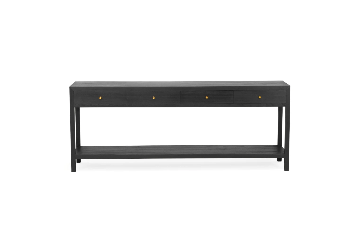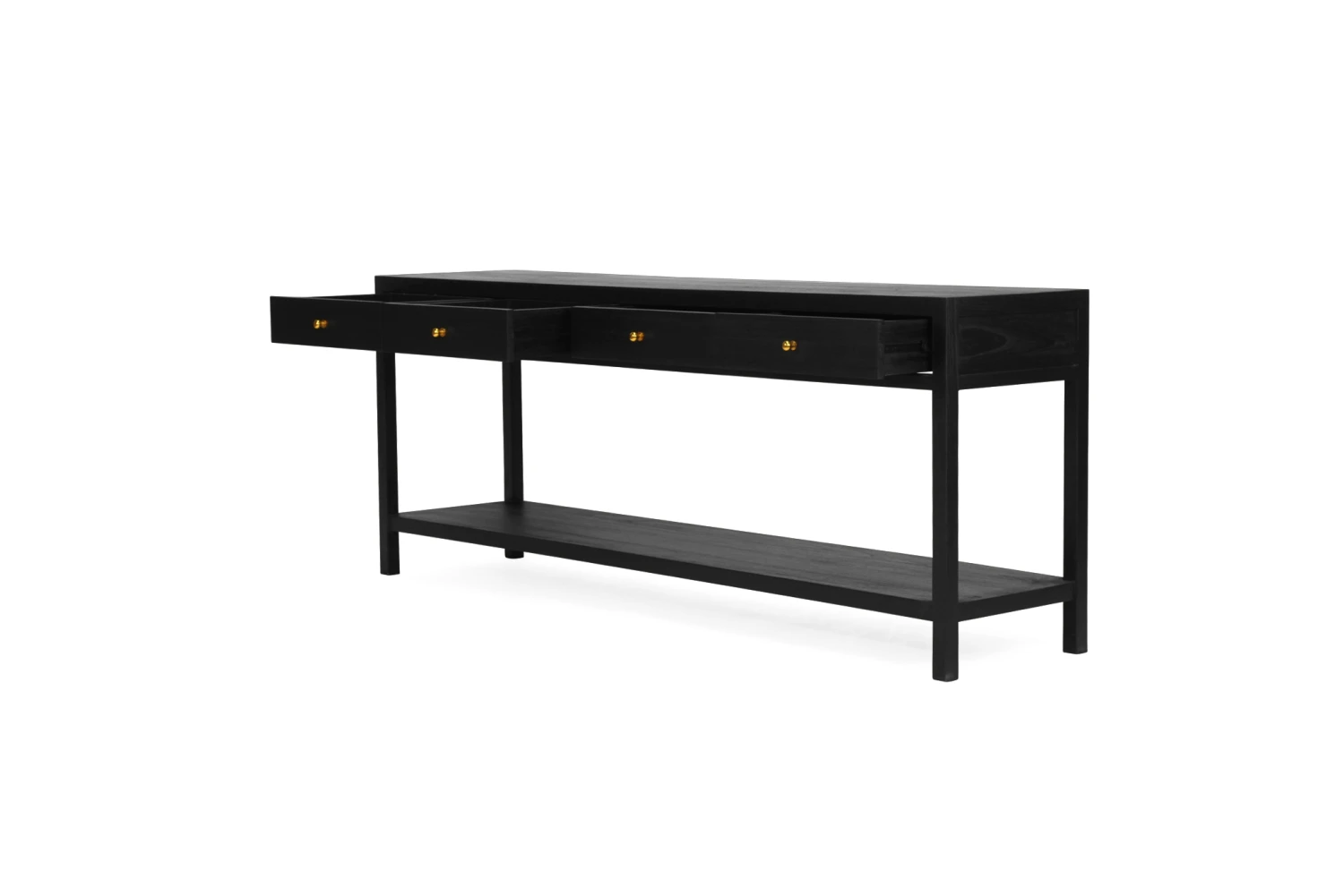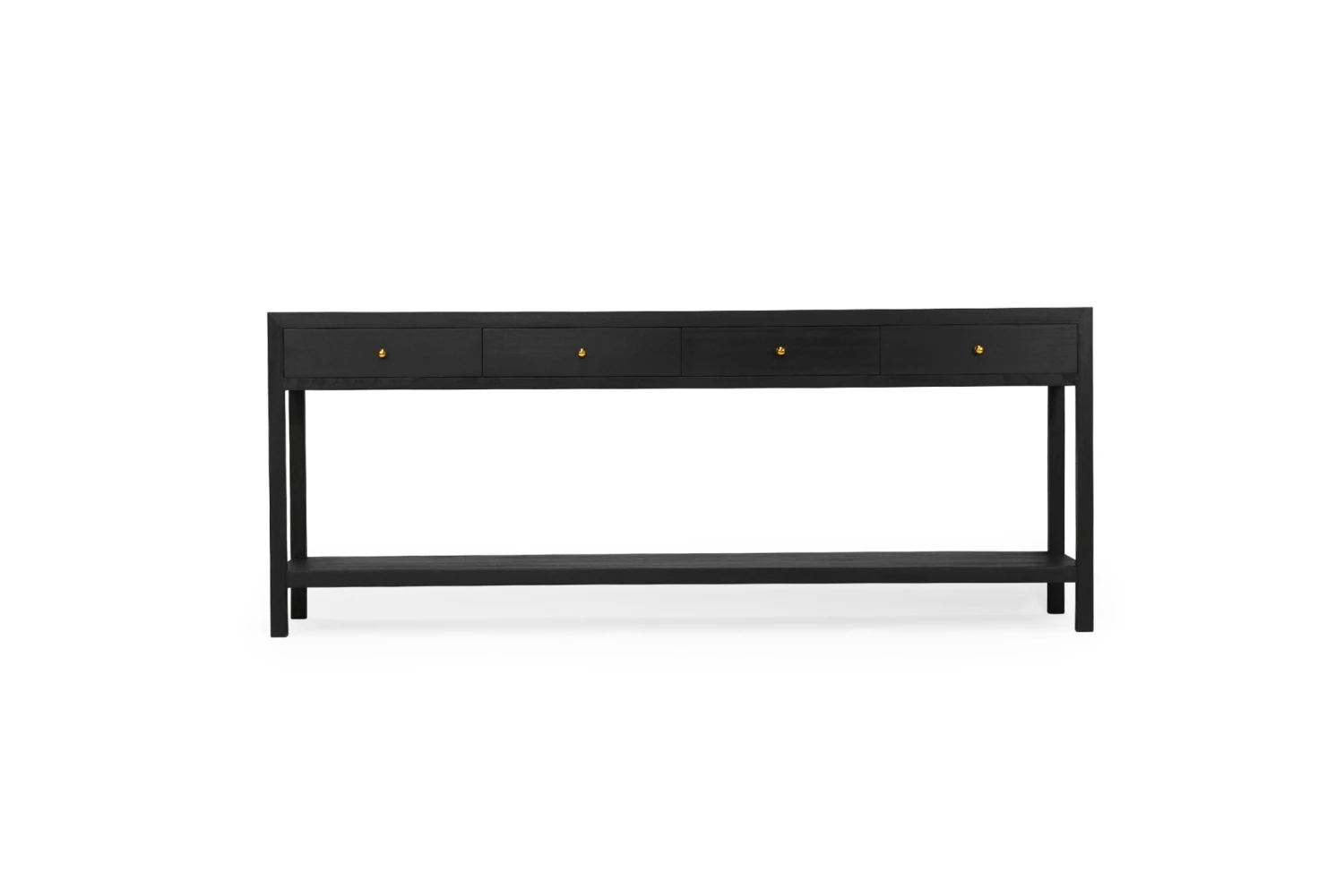 Crafted from solid hardwood, the Lindsay Console Table features handsome brass knobs. Finished in Black.