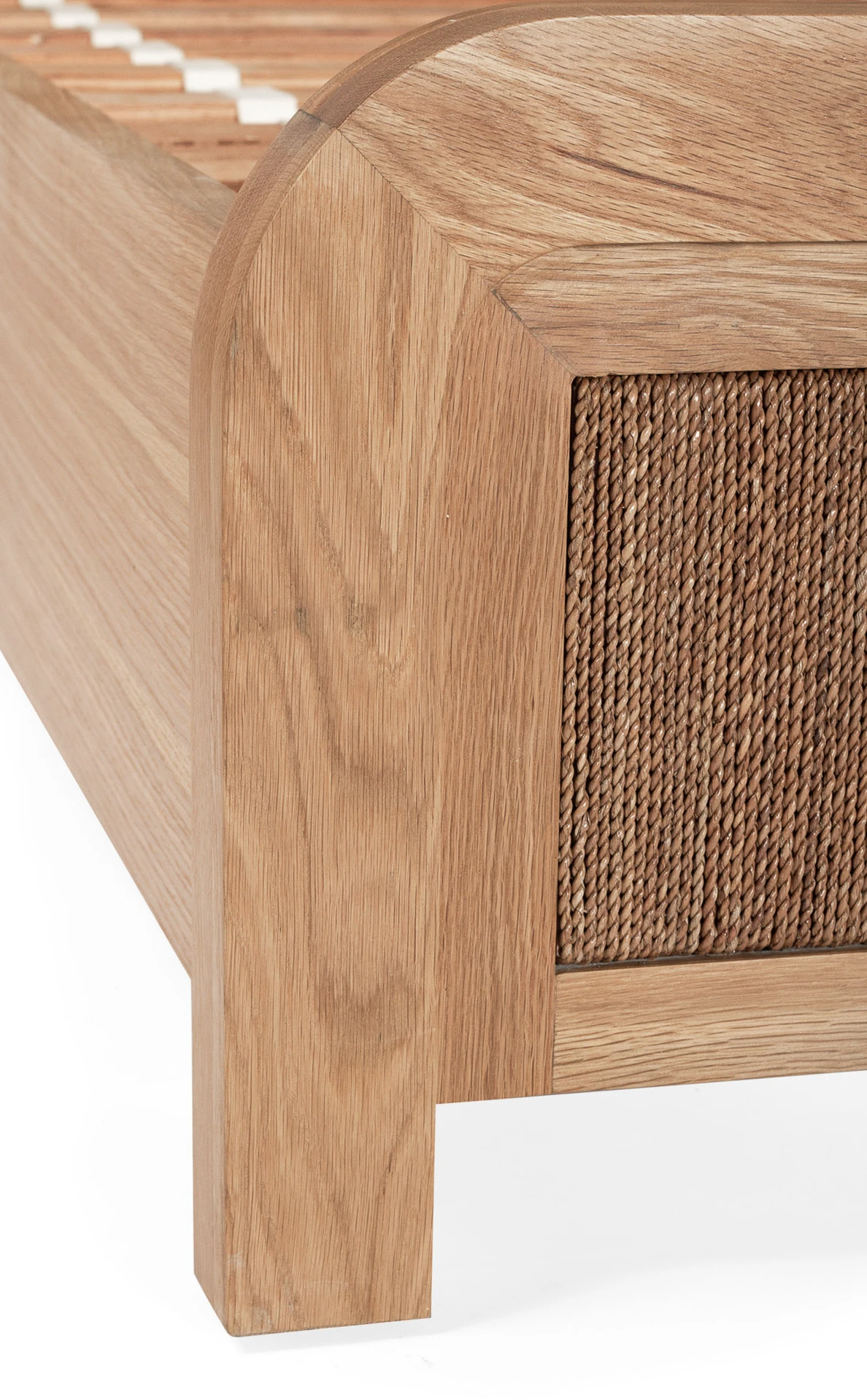Handcrafted from sustainably sourced solid American Oak, and finished with an elegant Lampakanay rope insert, the Milford Bed by Serrata Living is a stunning addition to any bedroom. With its soft curved edges and solid structure, the Milford bed will be the centrepiece of your room.