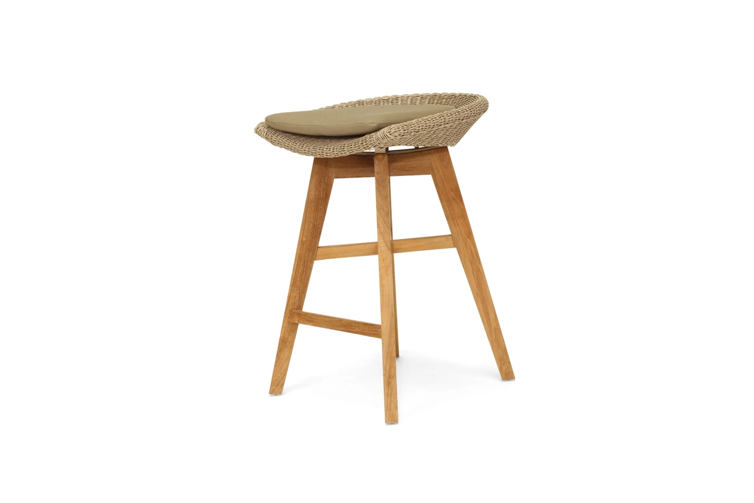 The synthetic cord, outdoor sun-proof acrylic cushion and Teak wood makes the Oceanic Outdoor Counter Stool perfect for indoor or outdoor use.