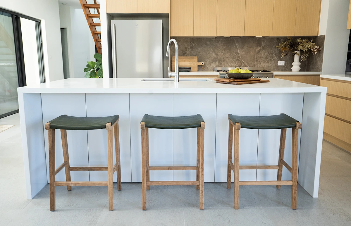 The Pasadena Leather Saddle Stool is a modern and contemporary stool suitable for most almost any counter or breakfast bench.