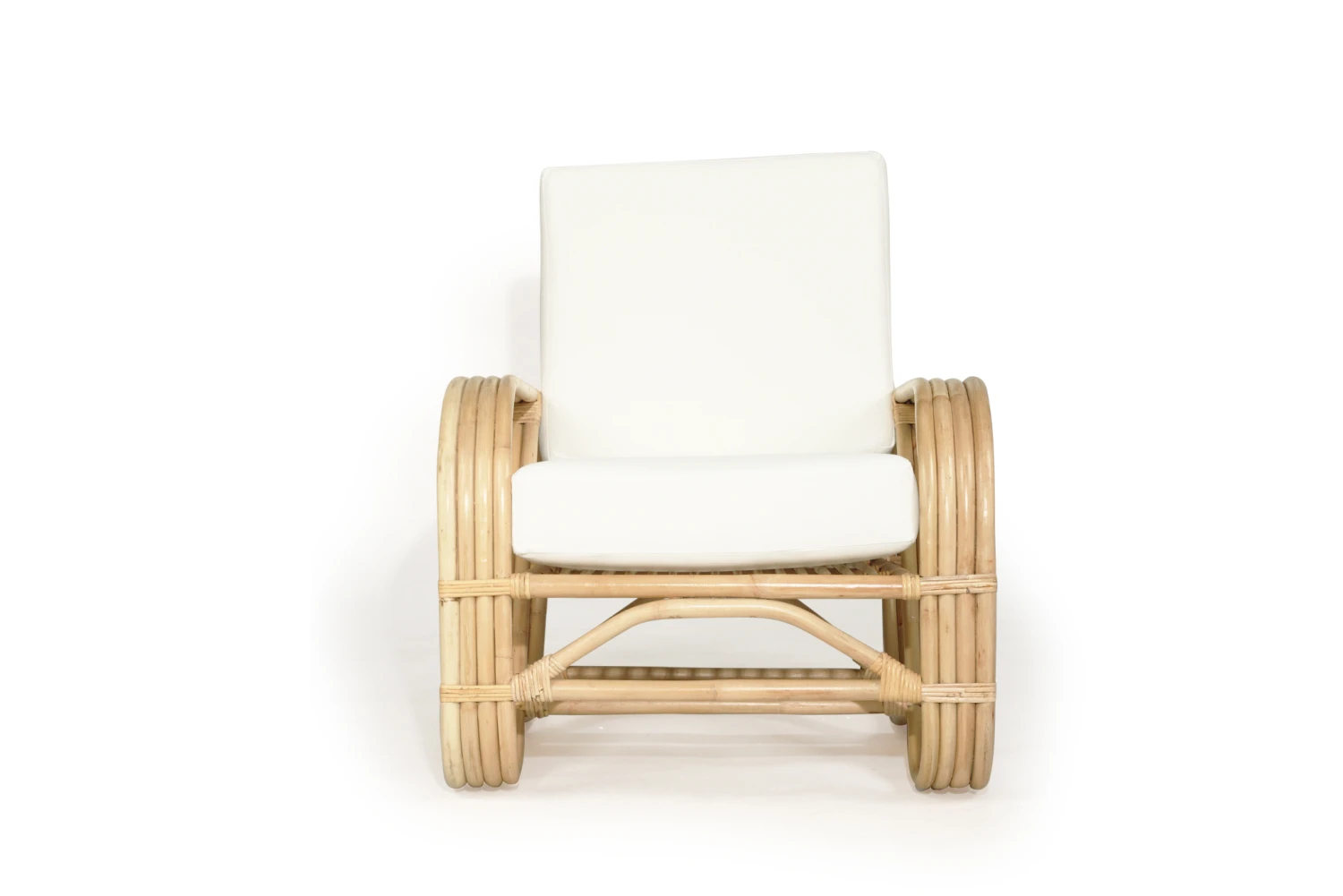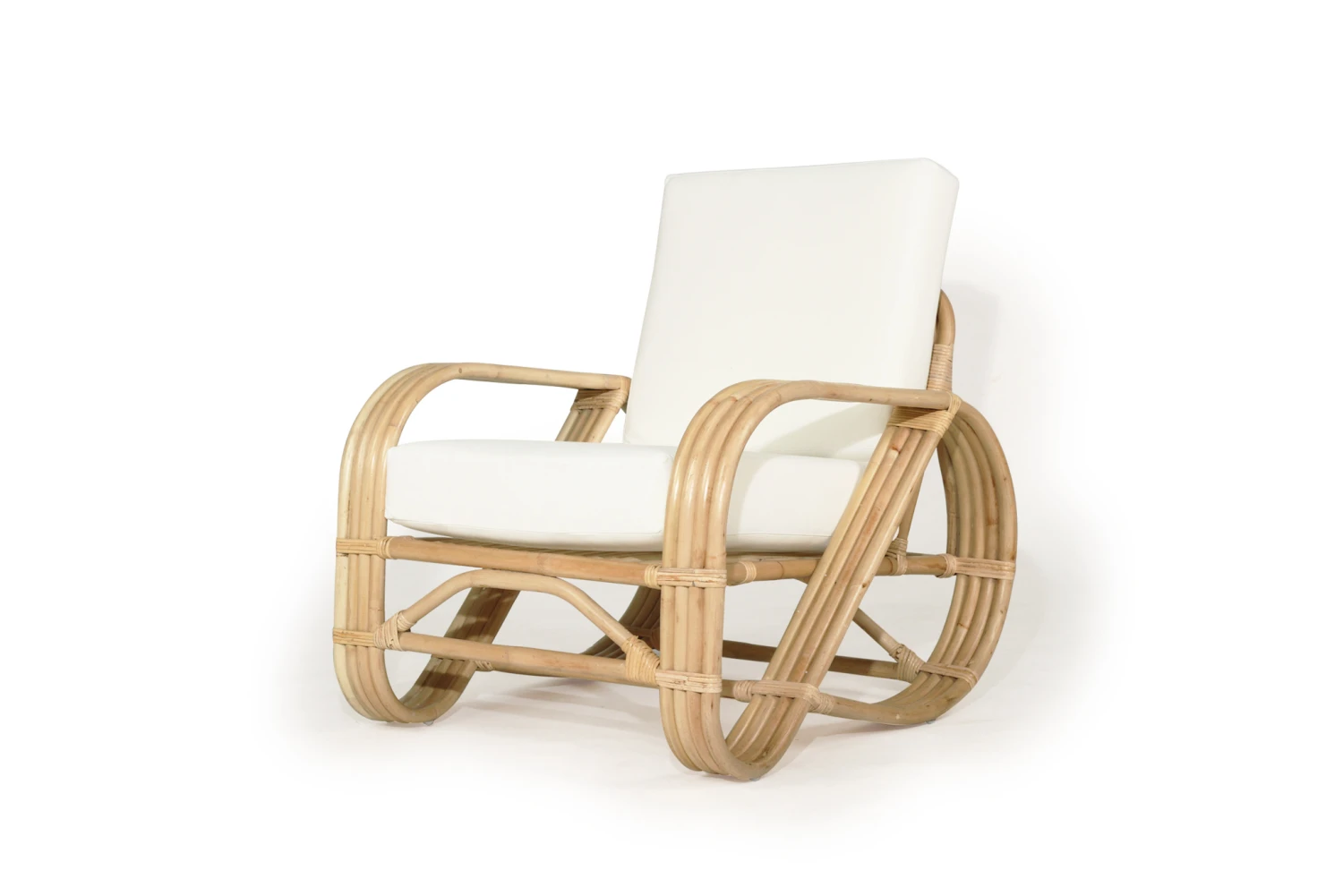 Our Pretzel Armchair features a unique pretzel-like design to beautify any room. It’s hand made frame from sustainably sourced rattan and seat are meticulously made to exacting standards. The cushions are covered in Sunbrella fabric for durability and ease of care.