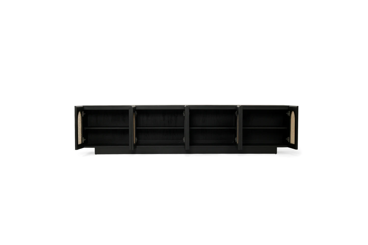 The Ryan Entertainment Unit is constructed from Mahogany and has a smooth black finish. It has 8 opening doors.