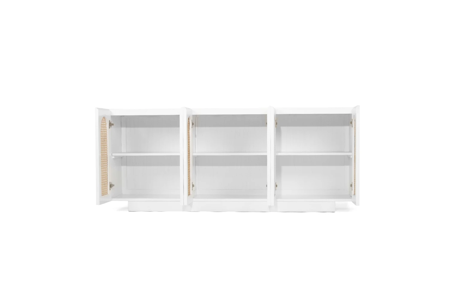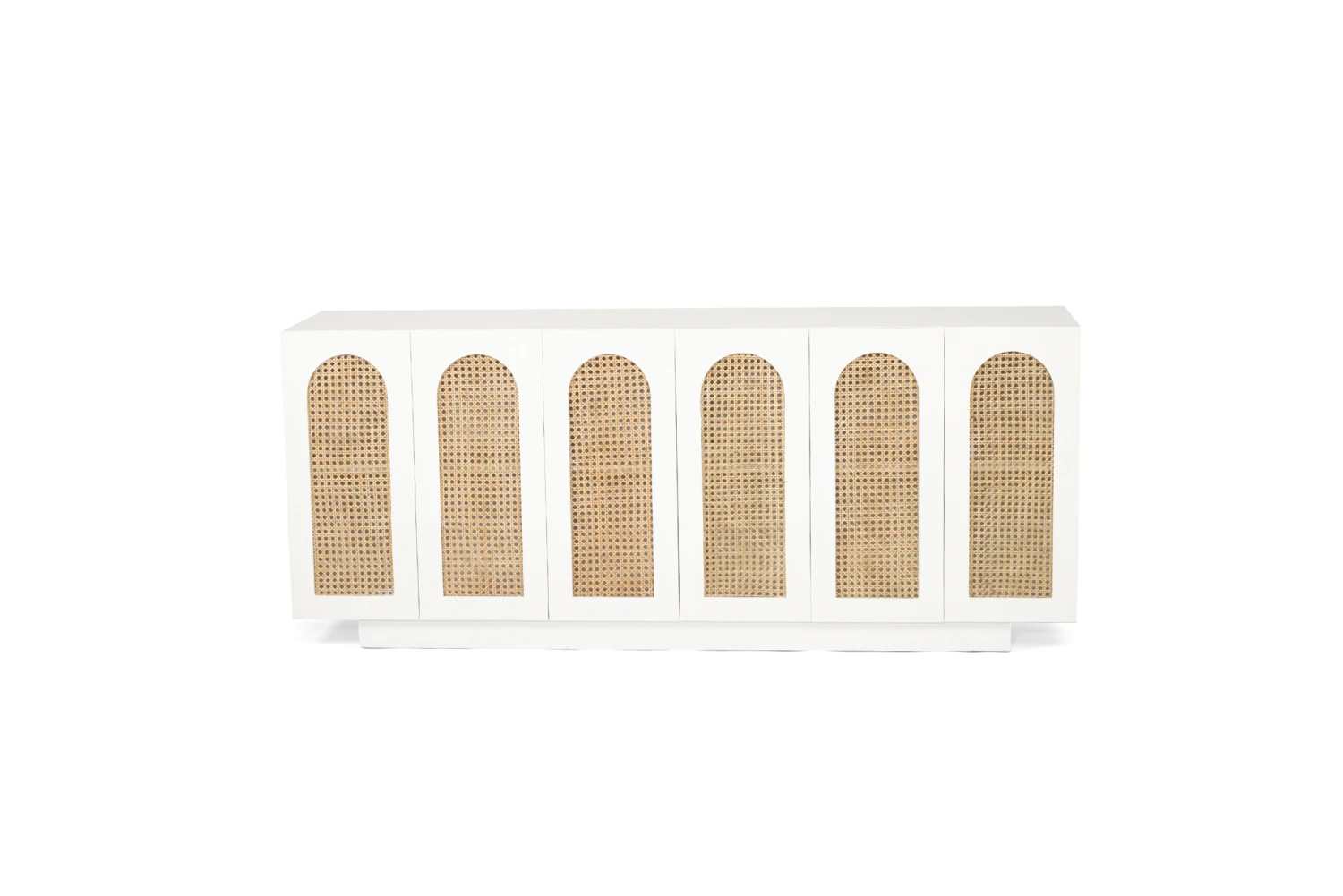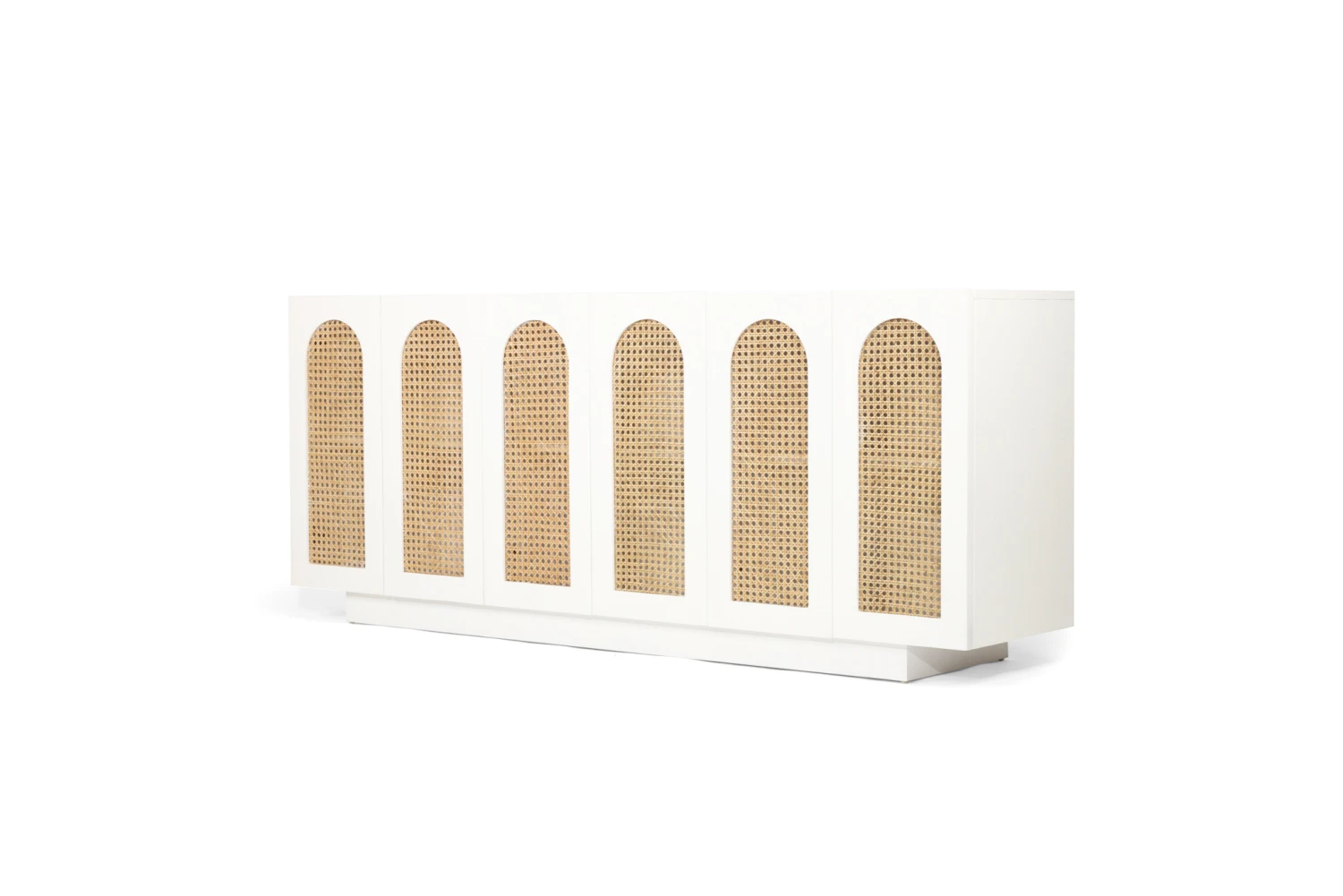 The Ryan Sideboard is constructed from Mahogany wood and has a smooth white finish. It has 6 opening doors.