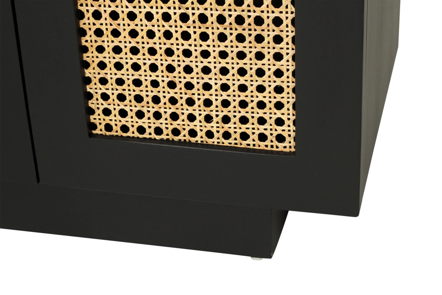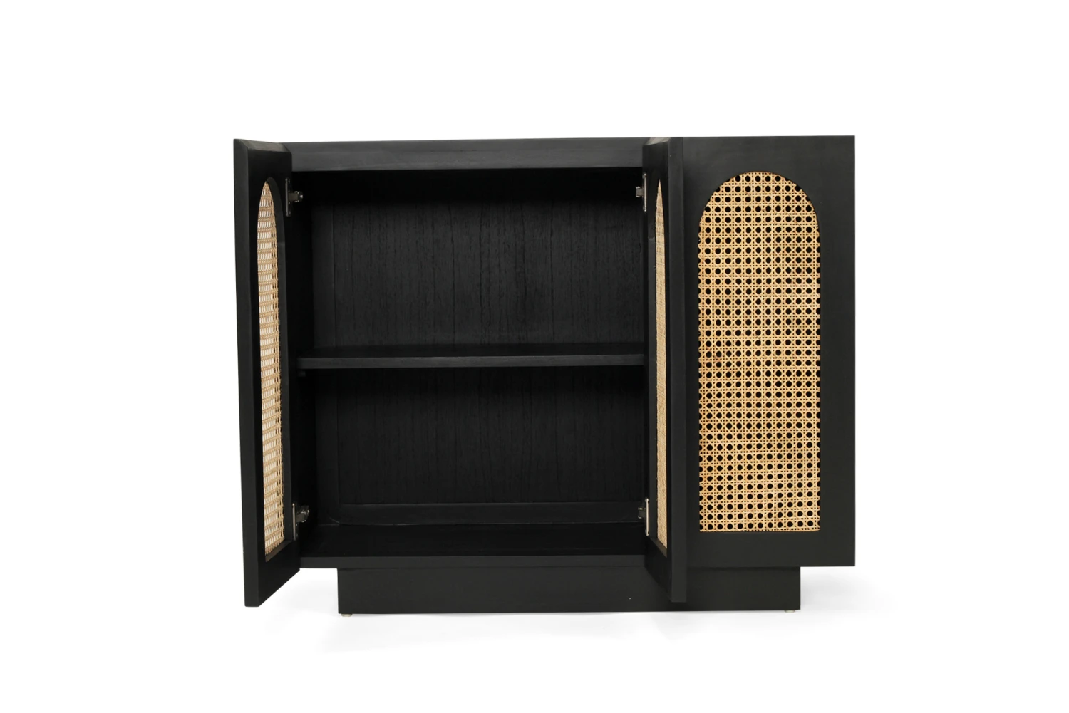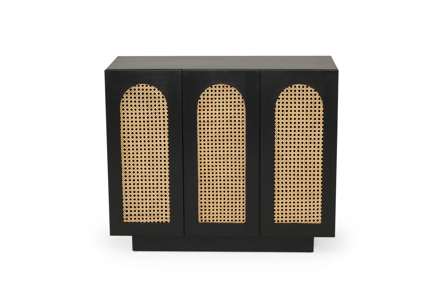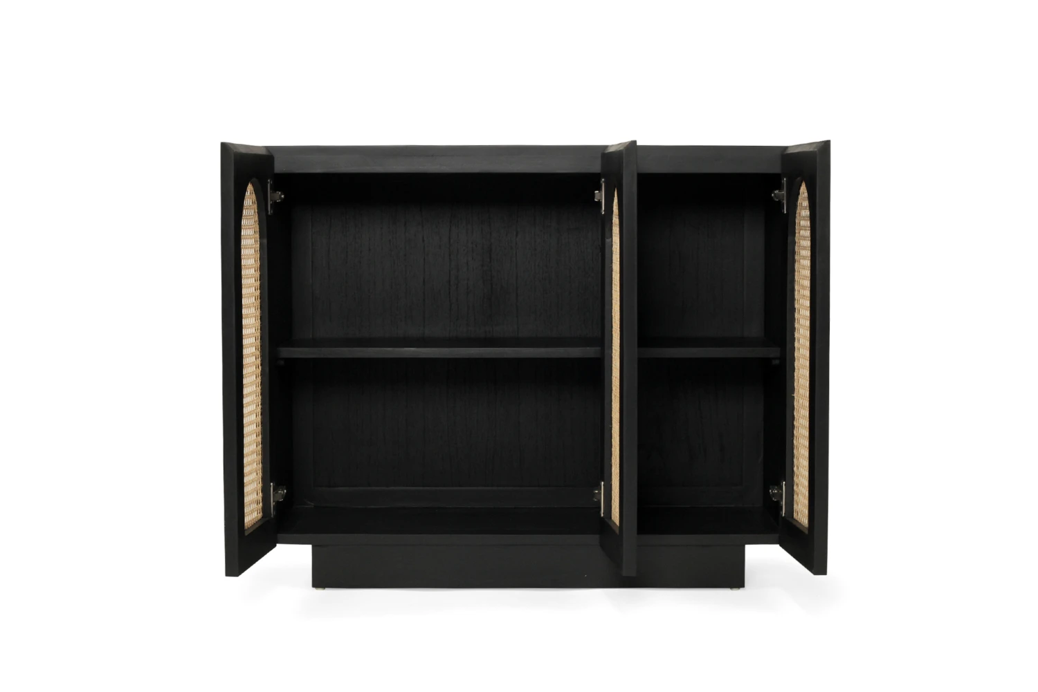 The Ryan Sideboard is constructed from Mahogany wood and has a smooth black finish. It has 3 opening doors.