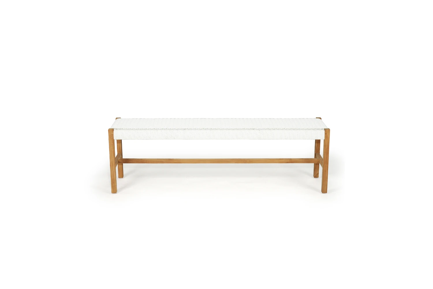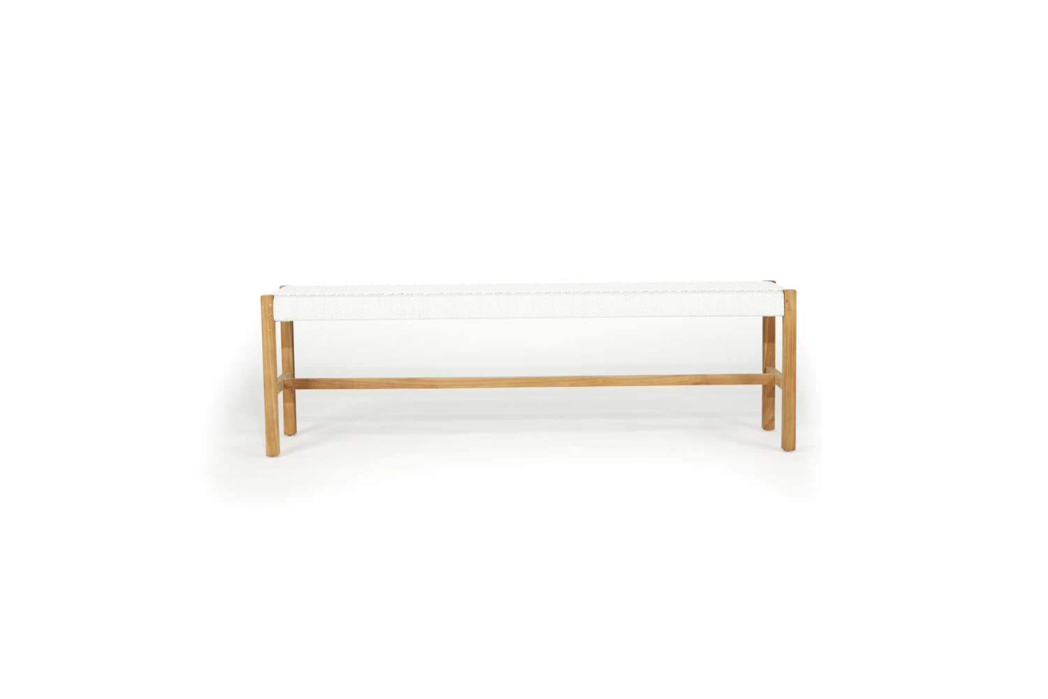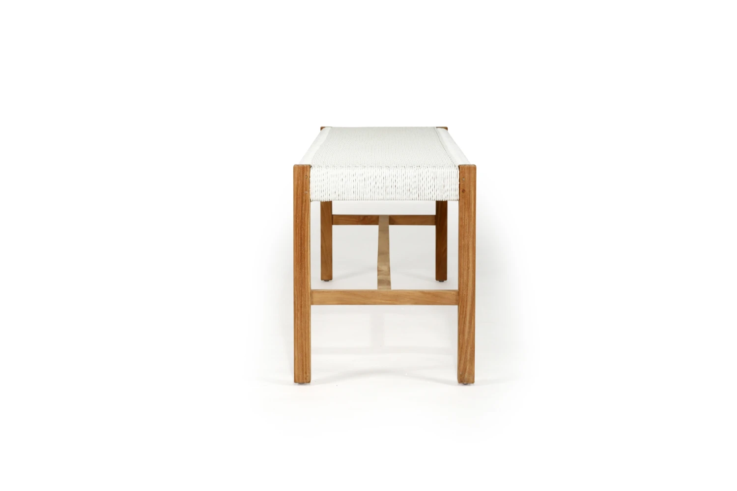 The Sabai woven dining bench seat showcases a handcrafted solid Teak frame supporting a coastal inspired woven seat.