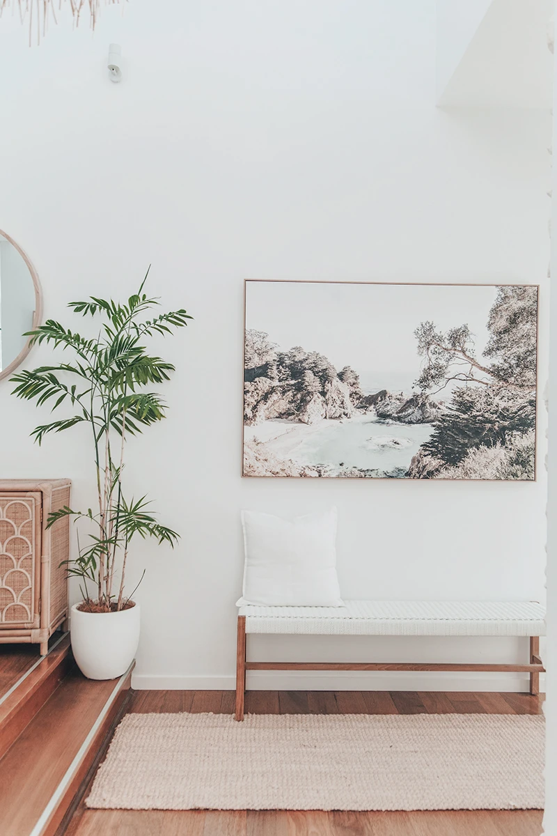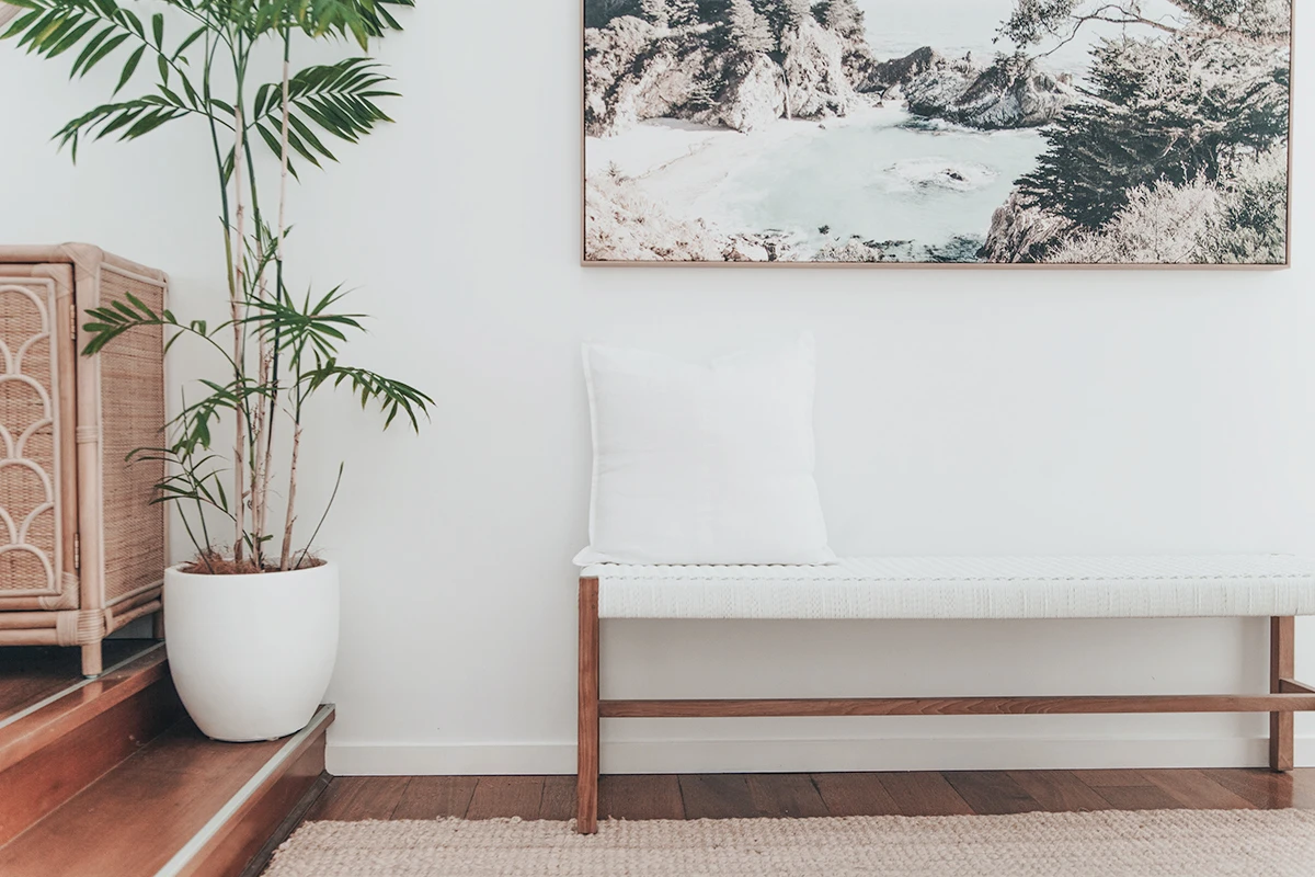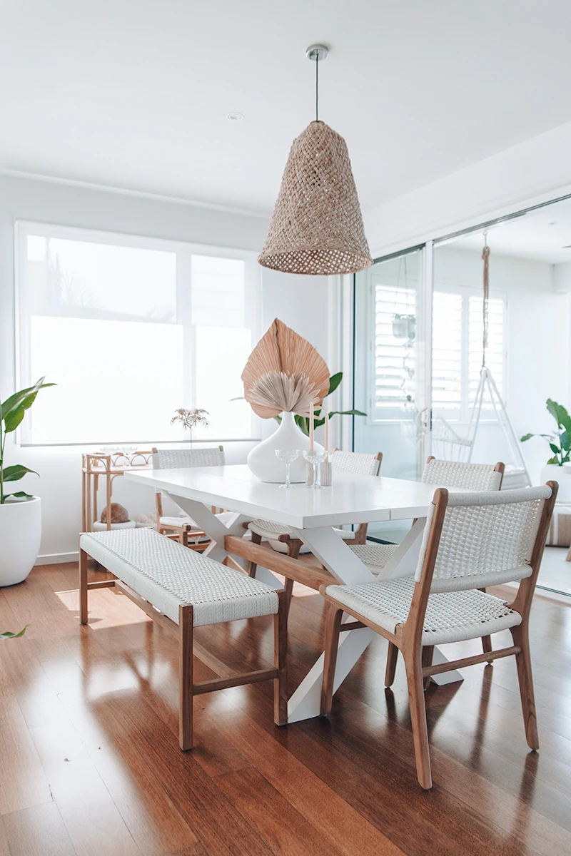 The Sabai woven dining bench seat showcases a handcrafted solid Teak frame supporting a coastal inspired woven seat.