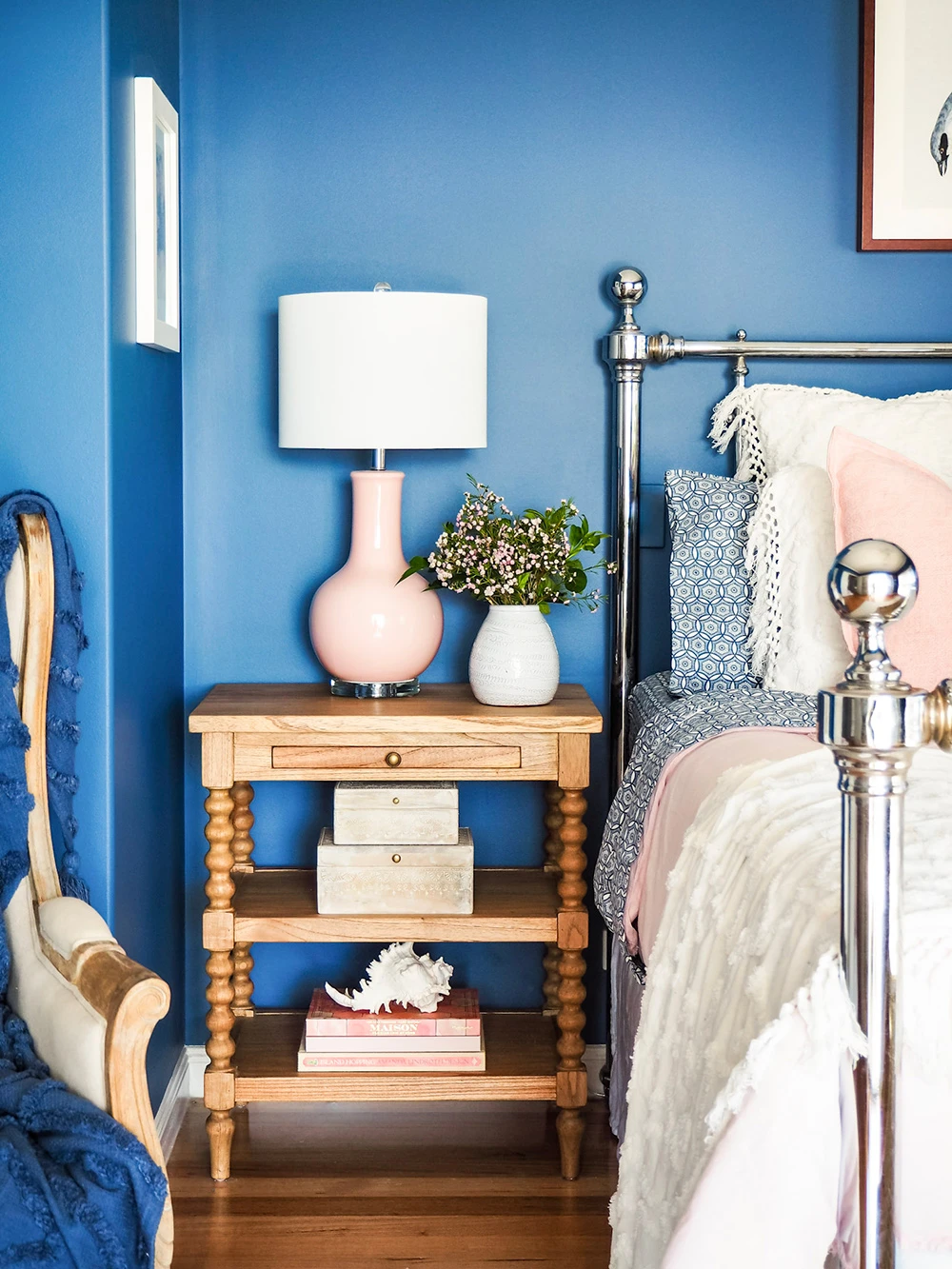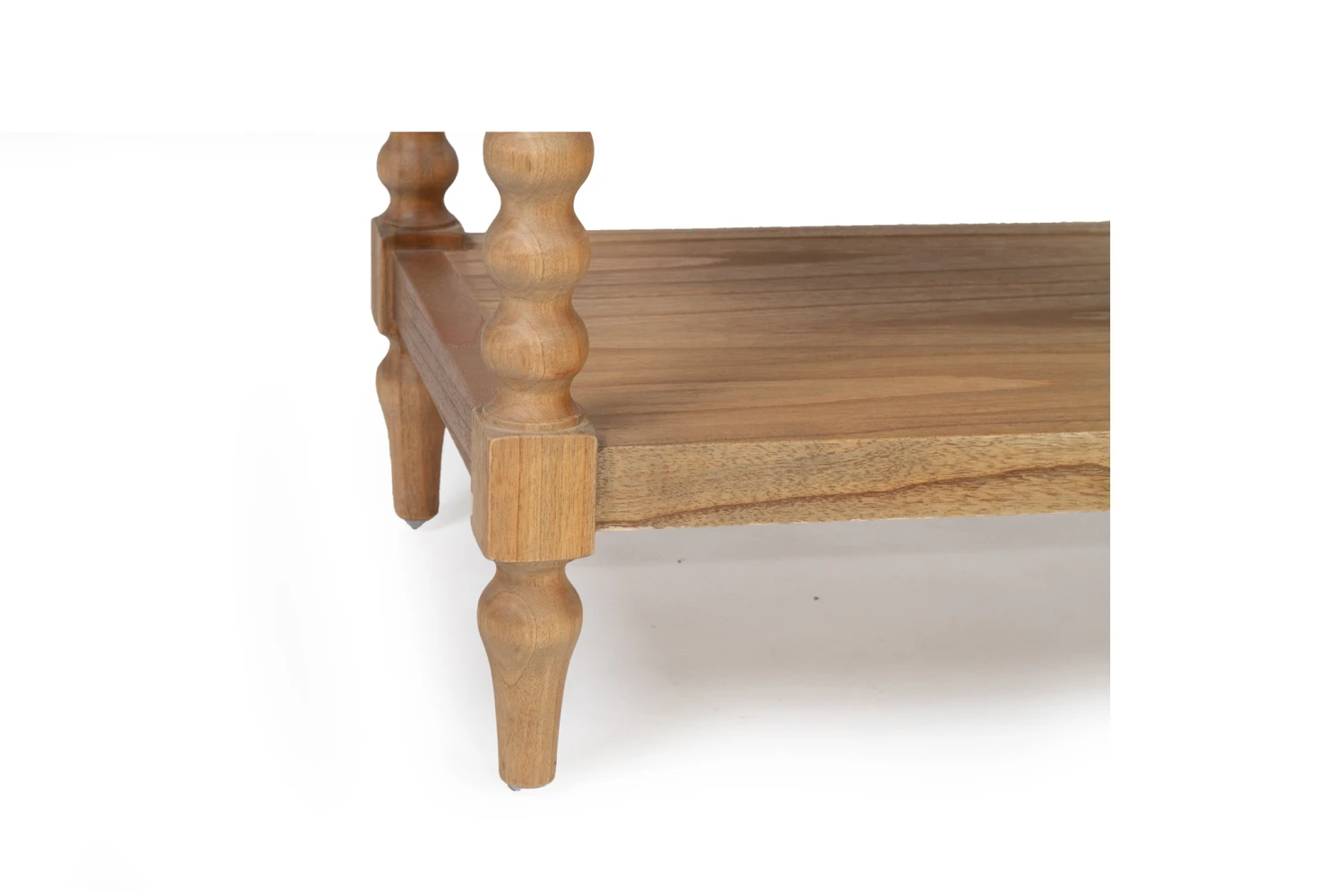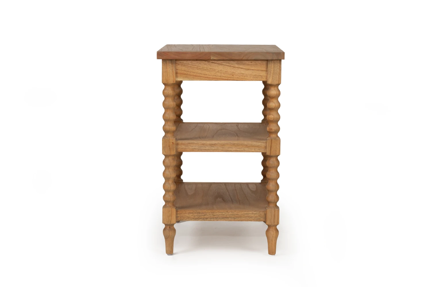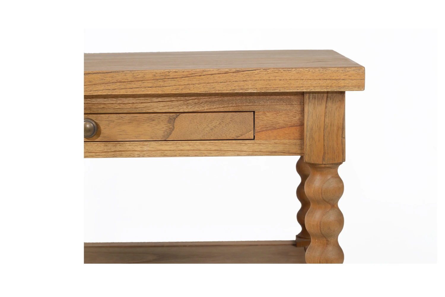 The Stradbroke Bobbin Bedside table is a large coastal inspired bedside table featuring four carved bobbin legs set in a bobbin frame. A simple brass knob complements a shallow drawer perfect for keeping small items.