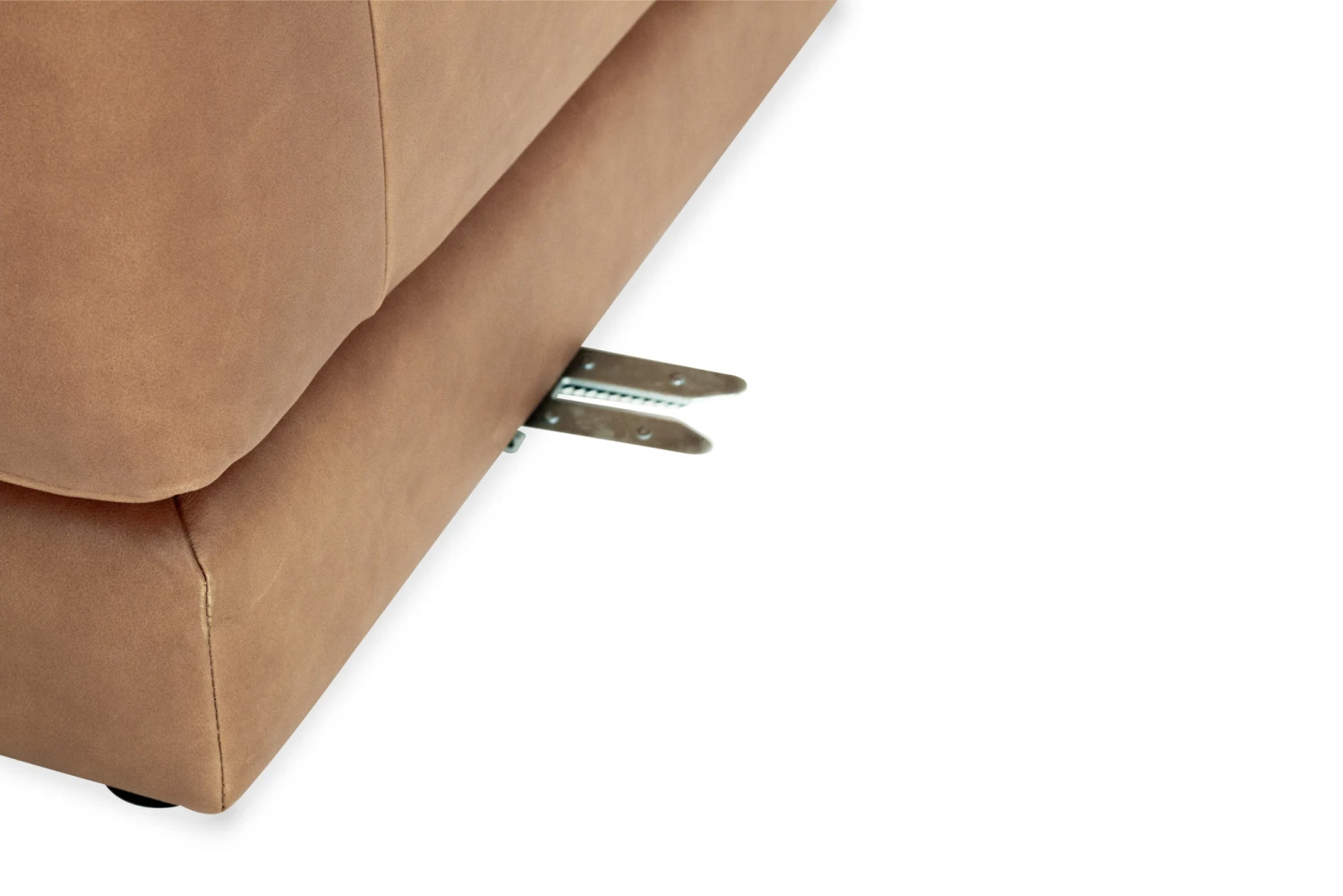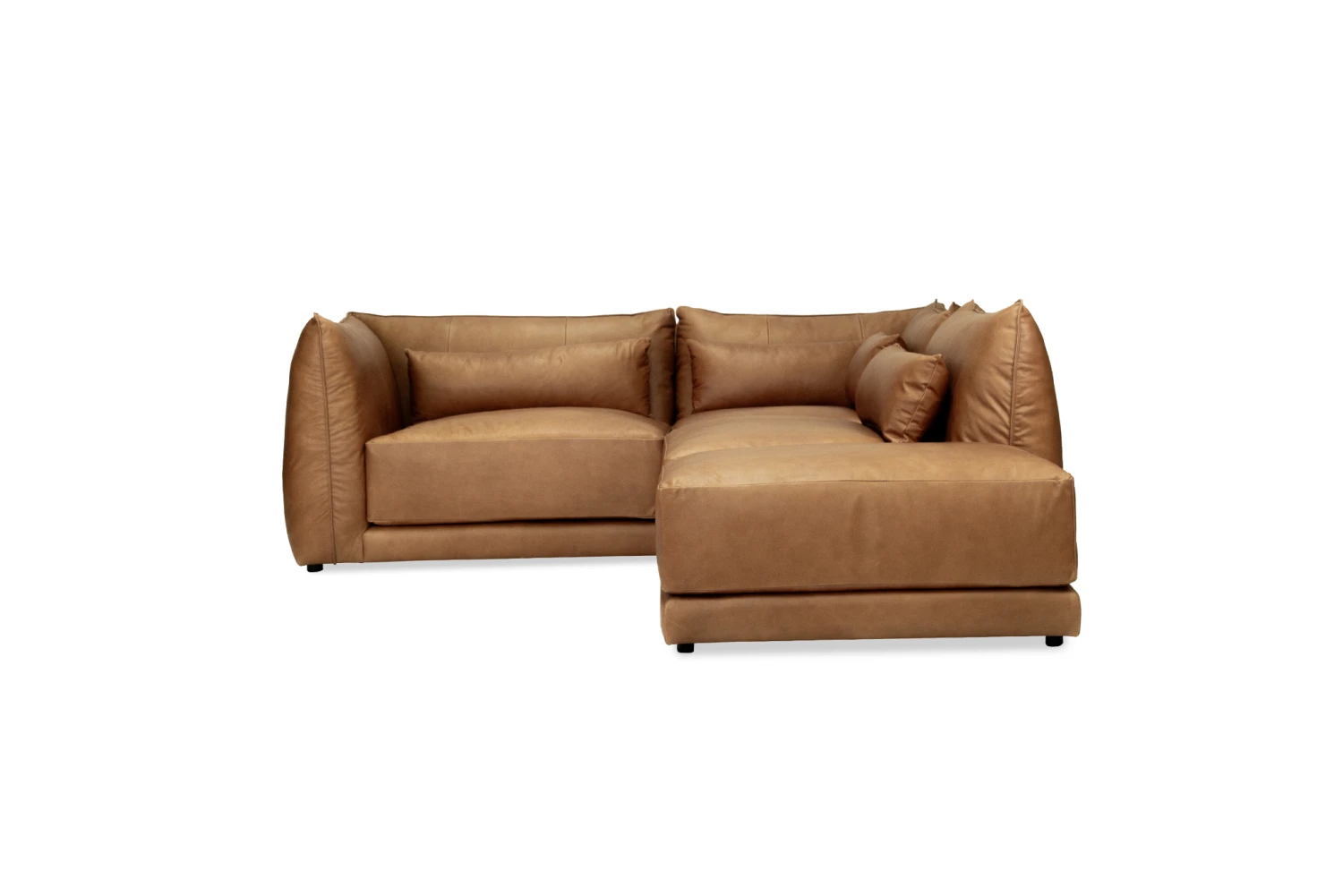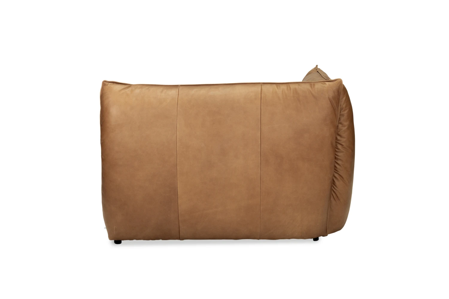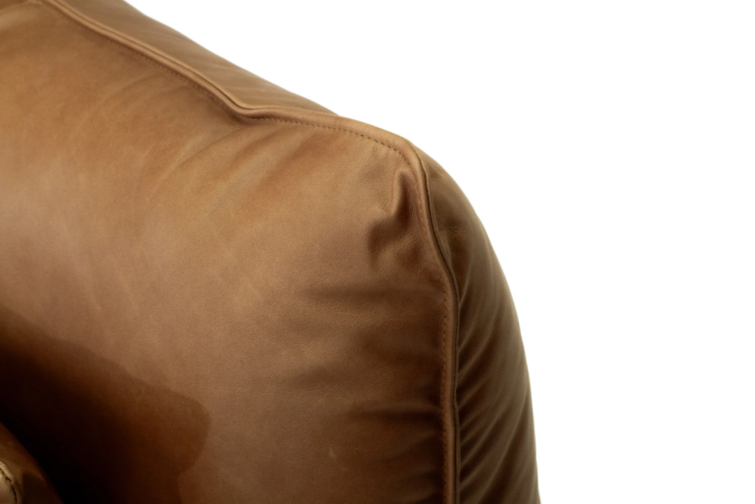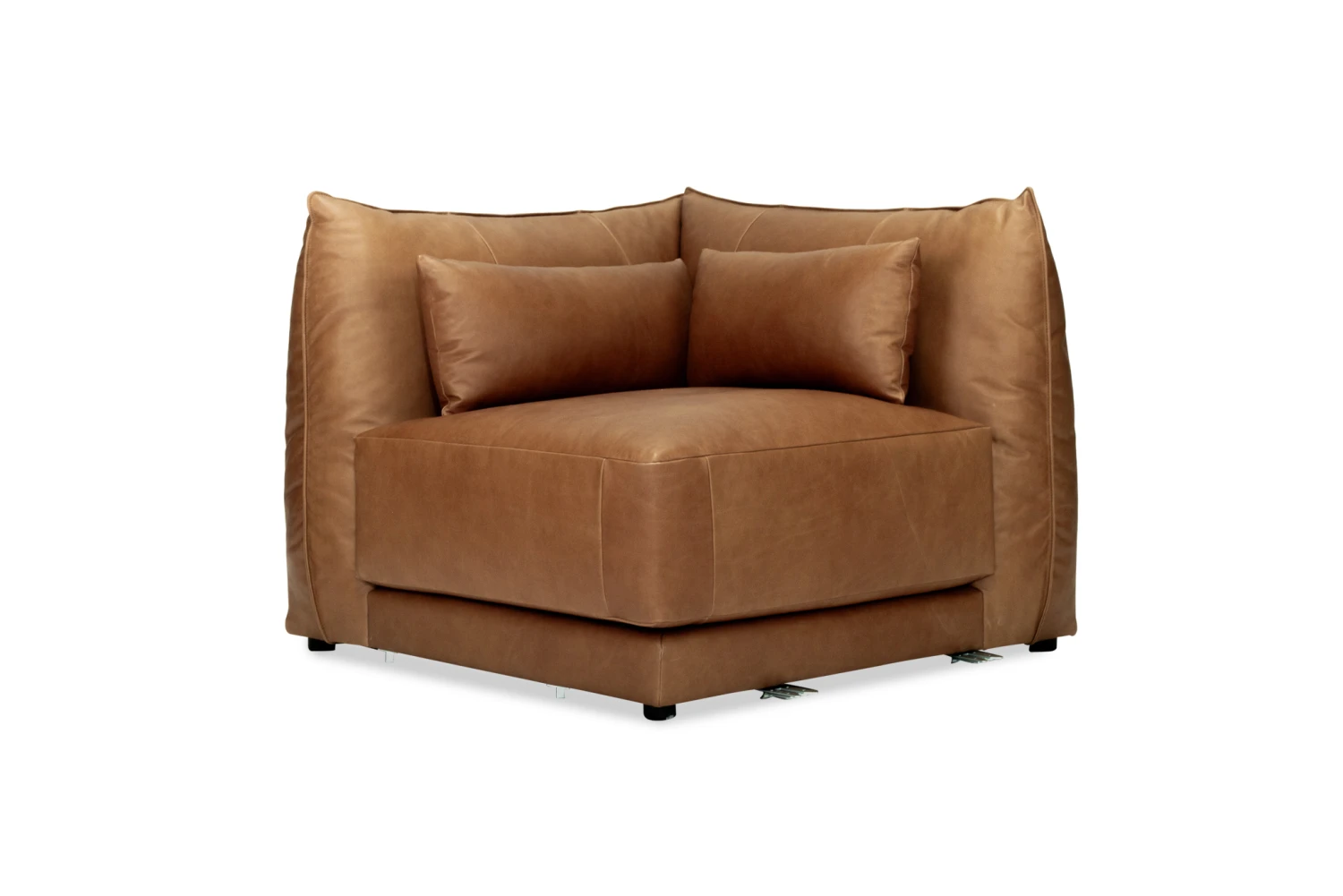 Finished here in Trends Saddle Leather, the Sunday Modular Sofa is also available in Linen Blend fabric or Ivory Boucle fabric.