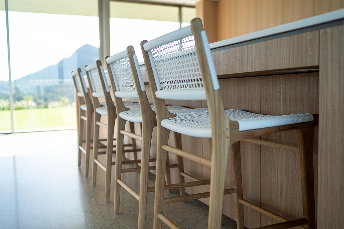 The Zen Counter stool combines the beauty of sustainable Teak wood with Viro synthetic cord. The over height is 95cm making it perfect for seamless counter top/kitchen bench stools.